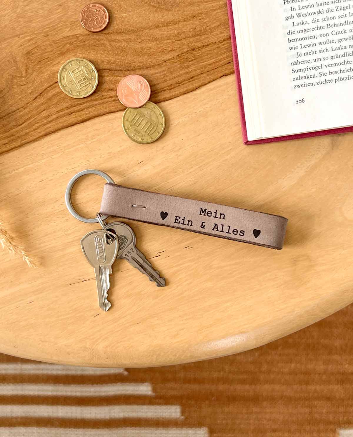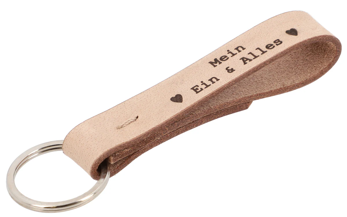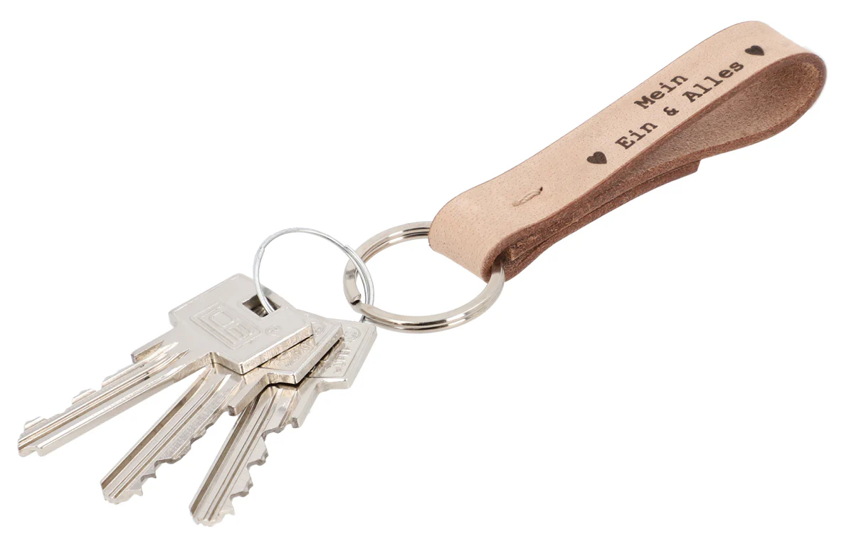Unser Schlüsselanhänger “Aaron” ist das ideale Geschenk für Deine Lieblingsmenschen. Gefertigt aus 100% echtem Büffelleder ist der Schlüsselanhänger nicht nur sehr stabil und zugleich weich, sondern erstrahlt auch im angesagten Vintage-Look. Ob für Wohnungs-, Garten- oder Arbeitsschlüssel – mit “Aaron” machen alle Schlüssel eine gute Figur und sind im Handumdrehen in Deiner Handtasche oder Deinem Rucksack griffbereit. Durch die Gravur erhält Dein Freund oder Deine Freundin nicht nur ein praktisches, sondern auch ein ganz persönliches Geschenk.
