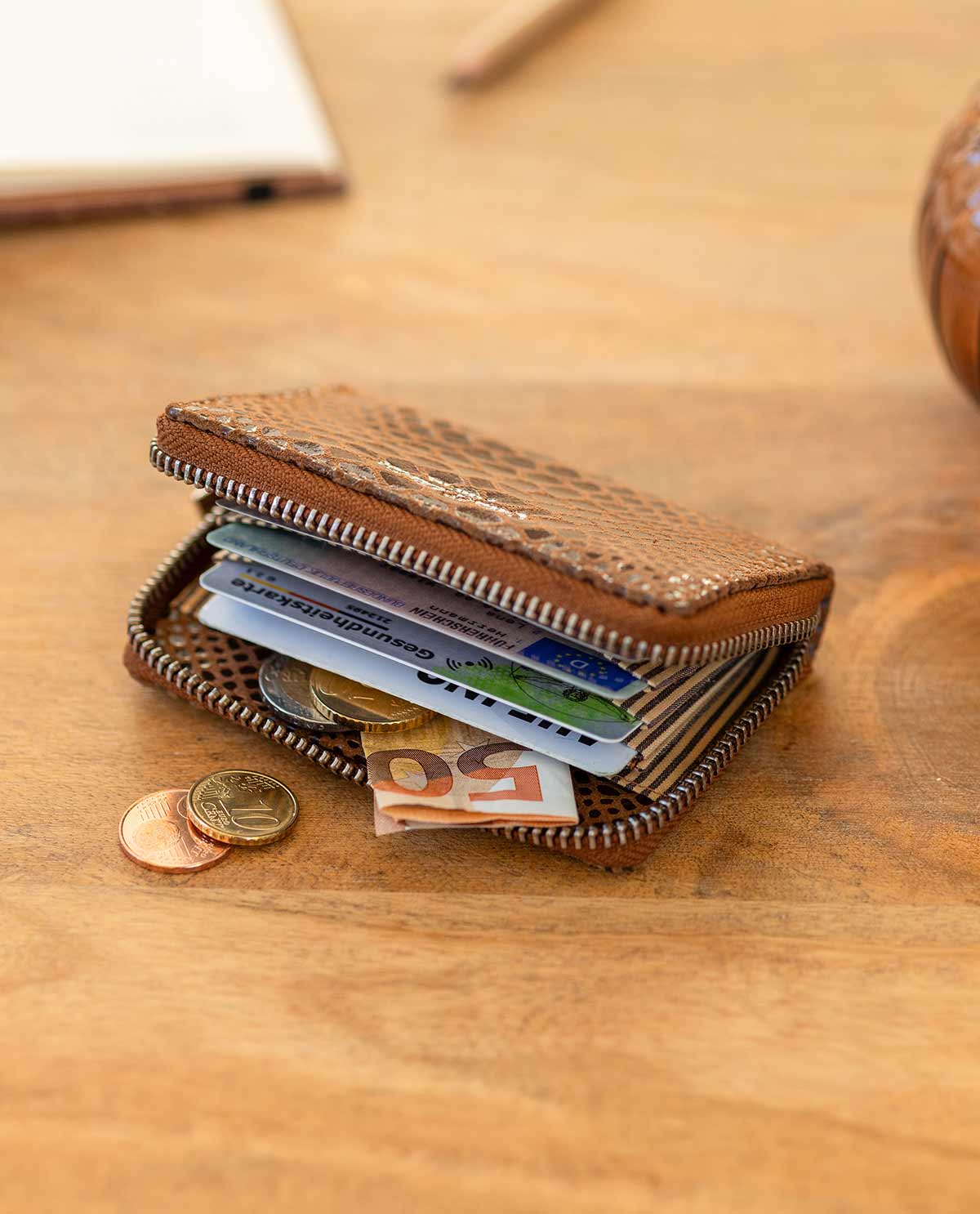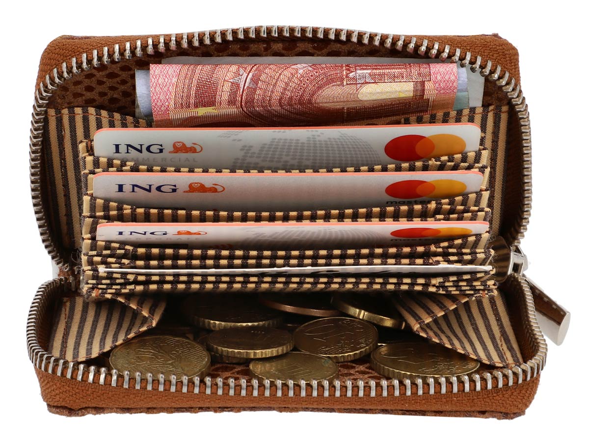 Sei una persona piuttosto strutturata, che per questo motivo ha anche un posto separato per le tue carte? Questo dovrebbe essere soprattutto funzionale e abbastanza discreto da entrare in qualsiasi tasca di giacca, anche la più piccola? Allora il nostro “Abel” è fatto apposta per te! Il suo interno ospita diverse sezioni per fino a 8 carte. Puoi anche riporre altrettanto bene qualche moneta o banconota. Una cerniera che va tutto intorno permette un facile accesso alle suddette carte.
