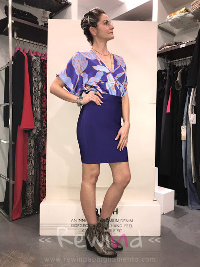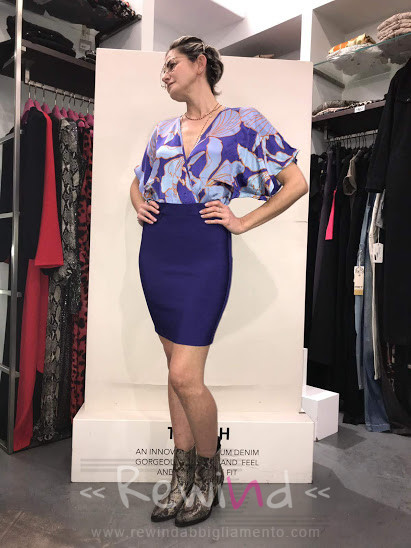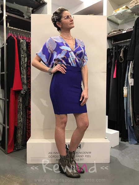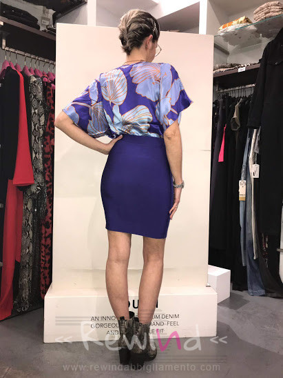 Abito combinato Marciano, strutturato con gonna tubino bandage viola nella parte inferiore, slim fit, lunghezza sopra il ginocchio, mentre nella parte superiore blusa morbida in fantasia 100% pura seta, con incrocio sul seno e taglio manica stile kimono. Indossa l’abito combinato Marciano nelle tue serate speciali con un tacco alto, sarai super elegante, oppure rendilo […]