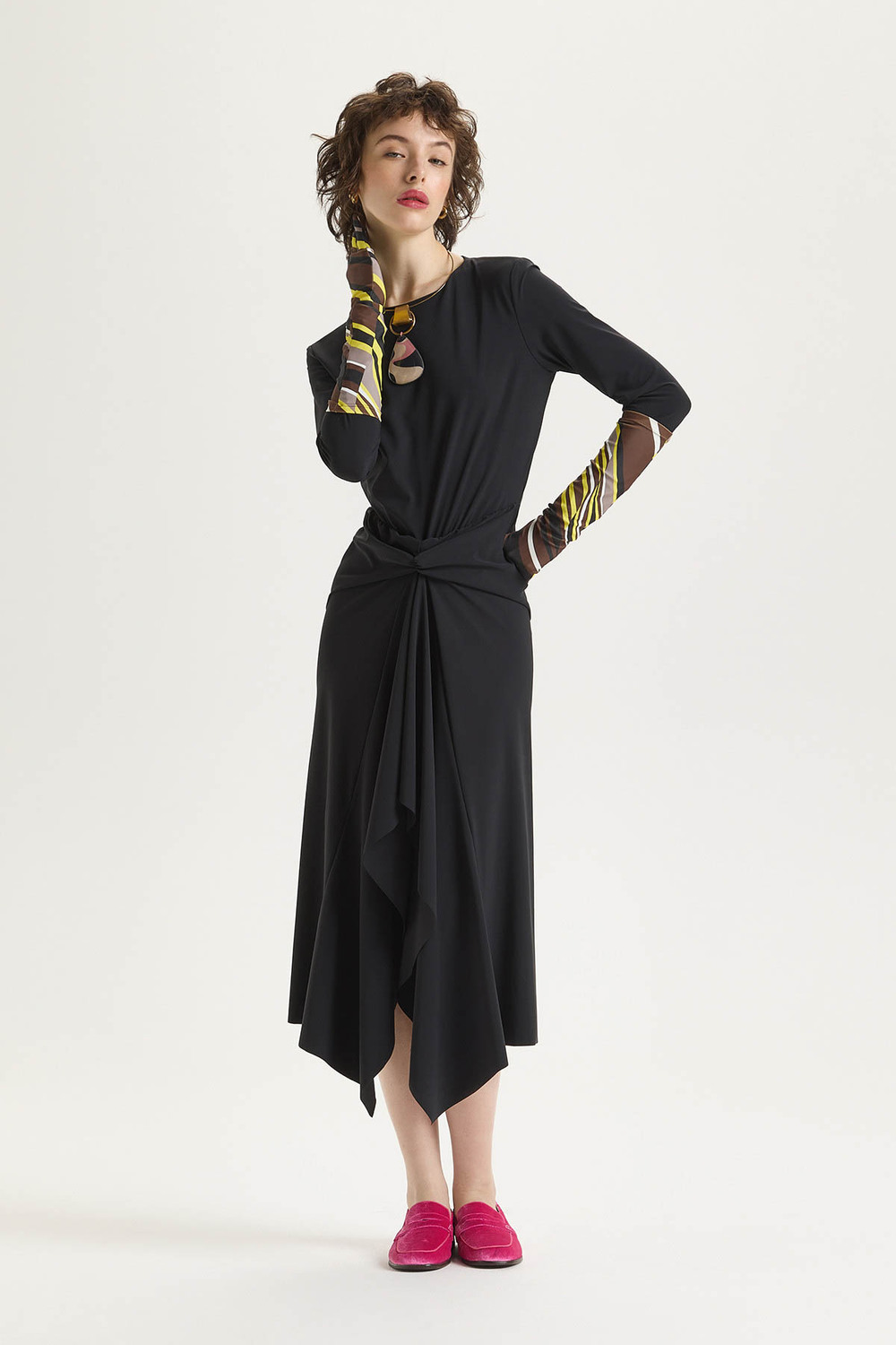 Gli occhi aperti sul mondo, le dita in cerca della natura, un orizzonte di profumi e suoni si svela. La scoperta di un mondo in cui ci si fida delle impressioni, della sensibilità, dellimmaginazione. Nulla è più sincero di ciò che sentiamo qui ed ora, più vero di una sensazione, più vivo dei sensi. E’ il momento di riconnettersi con se stessi e la natura: MUSE NEW COLLECTION FW23/24 La nostra Muse è un inno alle donne,alla femminilità, alla libertà e ai colori. Maliparmi® DESCRIZIONE ABITO SOFT JERSEY Abito midi in jersey tecnico stretch a colore unito, scollo…