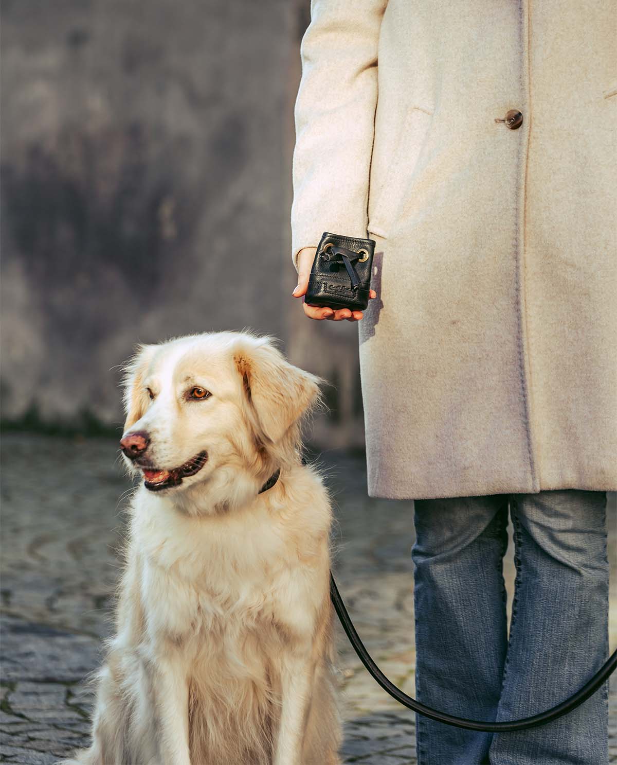 Con „Alaric“ hai tutto a portata di mano, quello che ti serve per la sessione di allenamento perfetta o una passeggiata rilassante. Questa borsa compatta combina un’elegante estetica in pelle con una funzionalità ben studiata ed è stata sviluppata appositamente per i proprietari di cani esigenti. Il robusto gancio in metallo consente un fissaggio sicuro a guinzaglio, cintura o borsa, così da avere sempre la borsa a portata di mano, ovunque tu vada. Una chiusura regolabile assicura un accesso rapido e semplice ai premi – perfetto quando bisogna fare in fretta.
