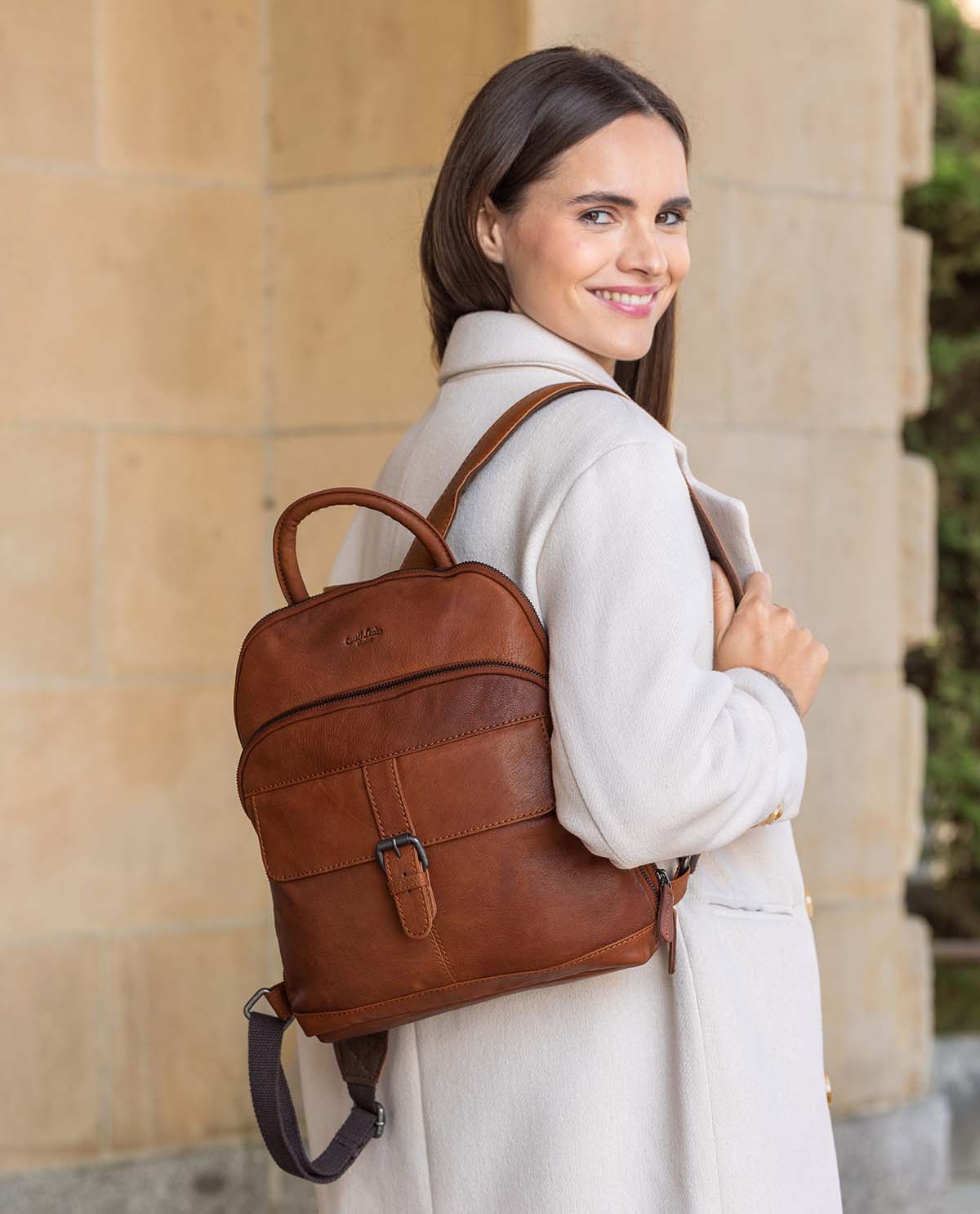 Una fedele compagna per la vita quotidiana – questo è “Alena”. Questo bellissimo zaino da città in pelle di capra robusta e di alta qualità , con un aspetto elegante, colpisce per la sua graziosa apparenza, ma convince anche per motivi pratici. La pelle rende lo zaino stabile nella forma, il che è indispensabile per un comfort ottimale nel trasporto. Inoltre, con questo bellissimo zaino non devi temere il confronto con una borsa spaziosa.