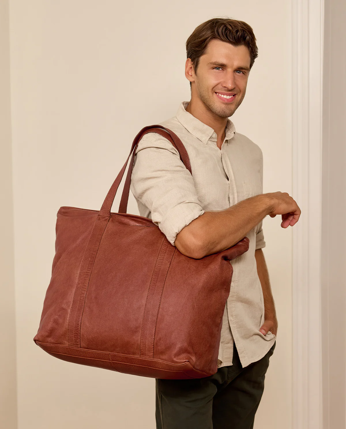 Che sia per la vita quotidiana o per la prossima gita – con „Alexis“ hai una versatile borsa a mano che combina perfettamente funzionalità e stile. Realizzata in pelle marrone di alta qualità , convince con il suo design elegante e una lavorazione robusta. Grazie all’interno ben progettato, offre abbastanza spazio per i tuoi oggetti essenziali, mentre la pratica cerniera garantisce che i tuoi oggetti di valore siano al sicuro dai borseggiatori. Che sia come borsa da spiaggia per giorni rilassanti al mare o come compagna elegante nella vita quotidiana – „Alexis“ è la scelta ideale per donne e uomini che danno importanza alla sicurezza e all’estetica.
