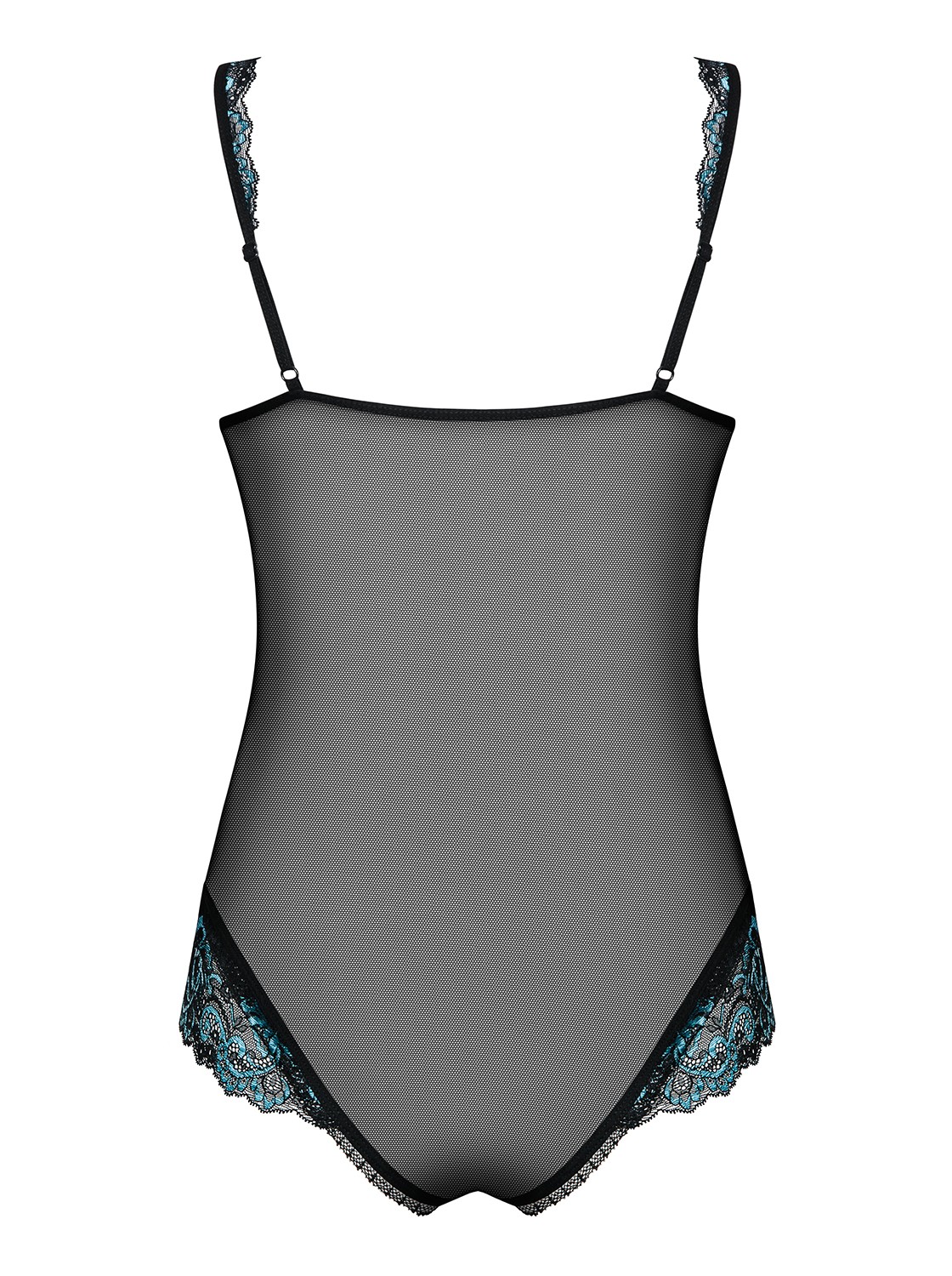 Sexy body aperto all’inguine, caratterizzato da graziosi inserti in pizzo floreale blu. Disponibile anche in XXL.