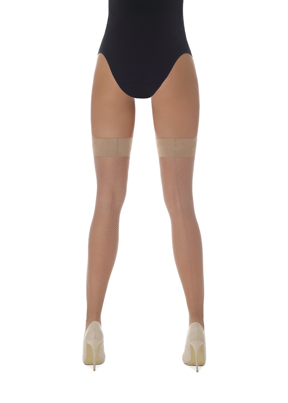 Bellissime calze autoreggenti realizzate a rete piccola con riga dietro .Disponibili nei colori: nero, bianco, rosso e light natural. COMPOSIZIONE: 85% poliamide, 15% elastam Il prodotto è realizzato con filati di rinomati produttori con il certificato internazionale Oeko-Tex . Prodotto in Europa.