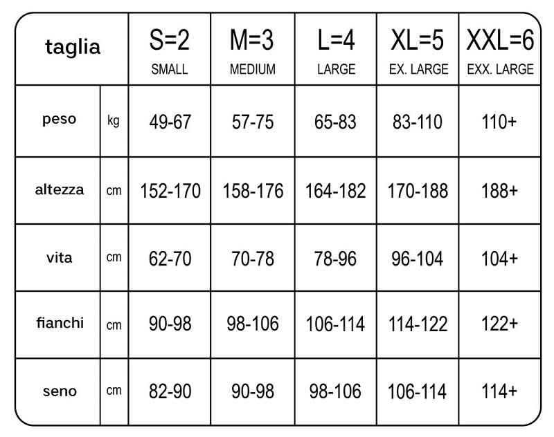 Disponibili anche nelle taglie XL e XXL.
