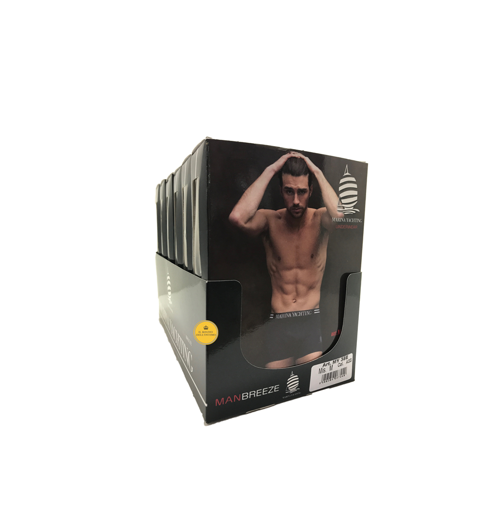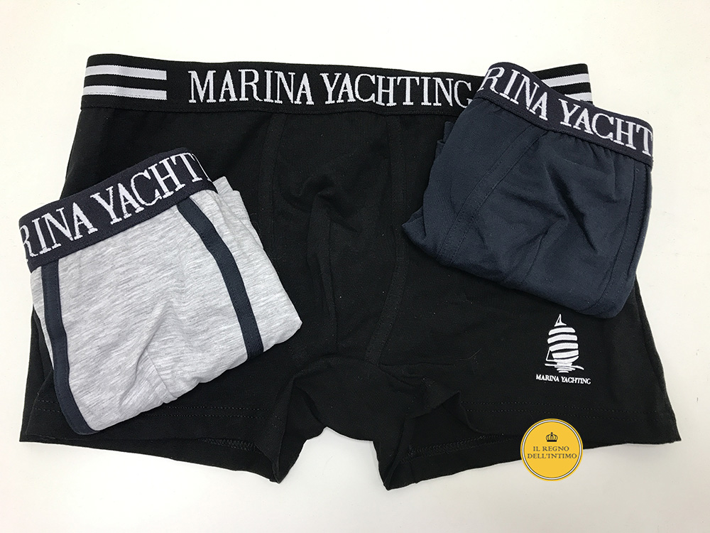 Boxer moda uomo Marina Yachting in cotone elasticizzato. Fascia elastica in vita con logo. Disponibile in tre colori: Nero Grigio Blu
