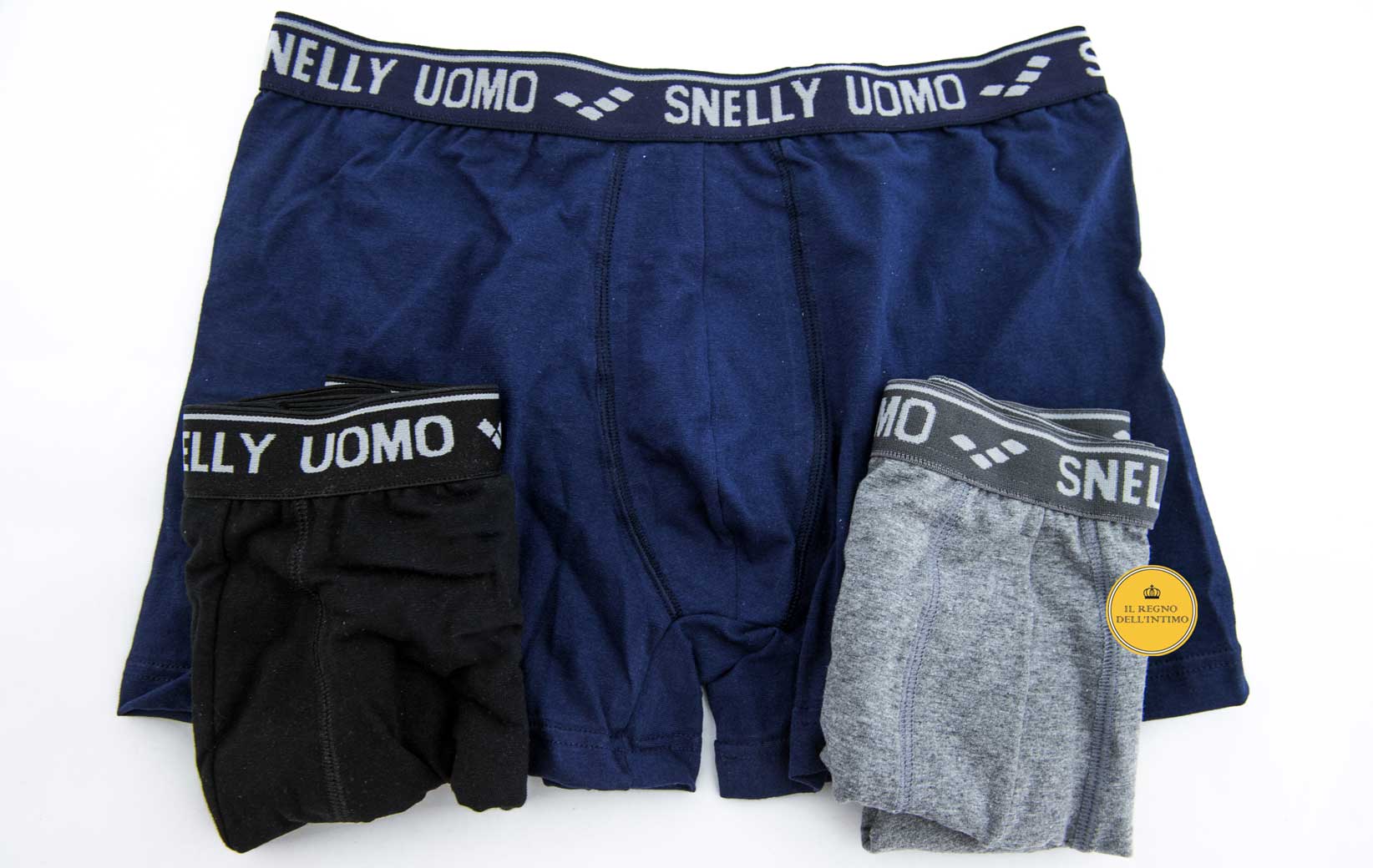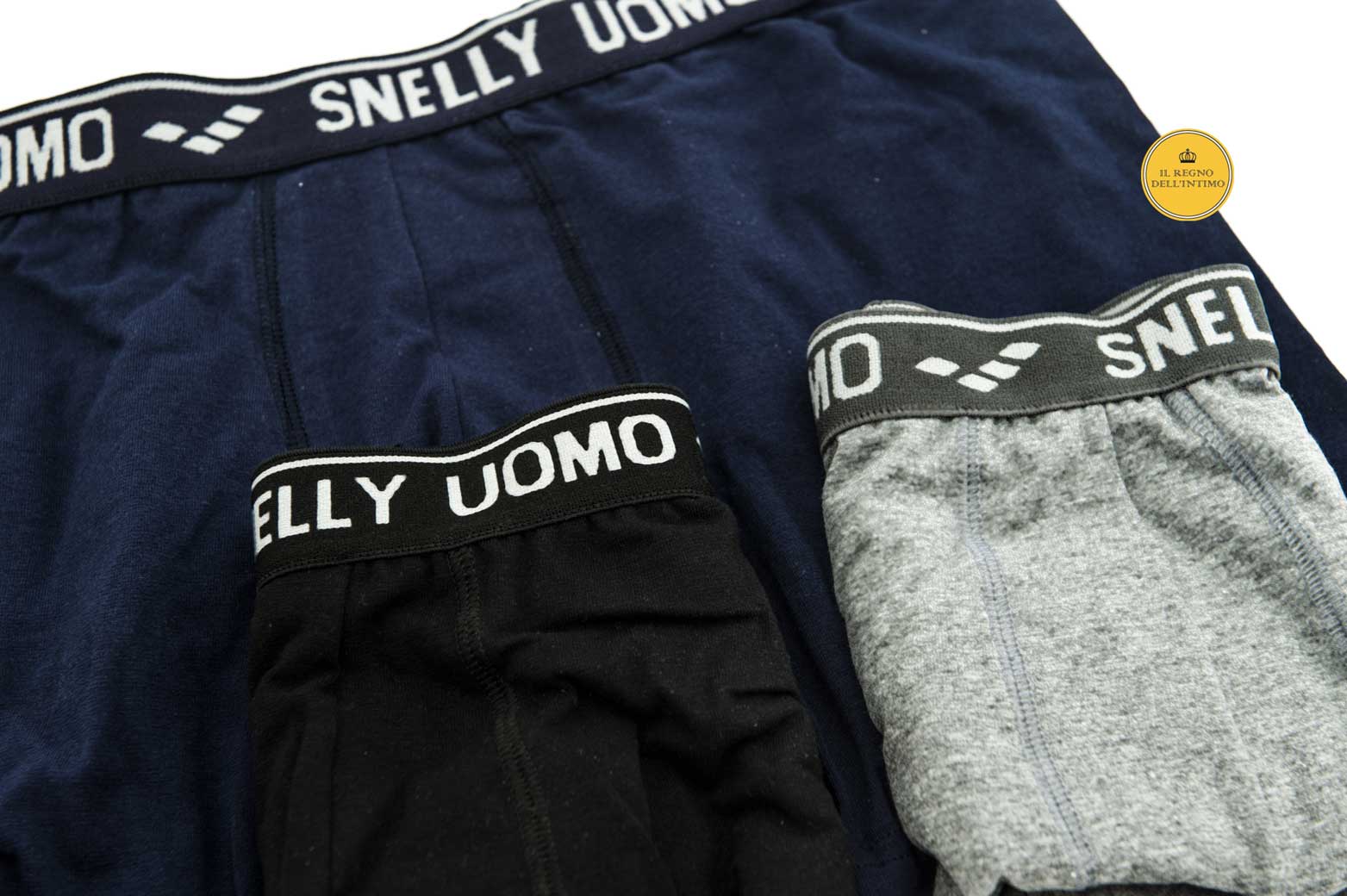 Boxer Snelly uomo realizzato in cotone elasticizzato. Elastico esterno logato. Ottima qualità! Disponibile in tre colori: Nero Grigio Blu