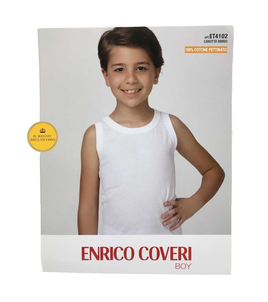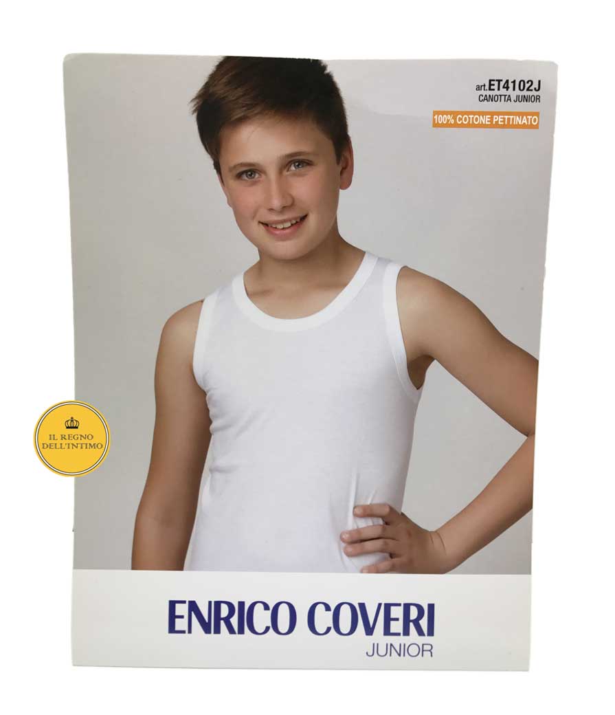 Canotta spalla larga Coveri, in morbido cotone pettinato. Boy e junior. Disponibile in quattro colori: Bianco Blu notte Jeans Grigio