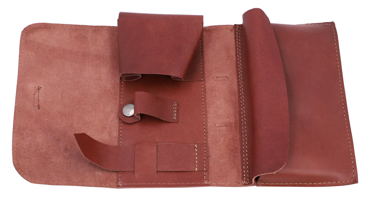 Questa borsa per tabacco “Ian” è elegante, pratica e il compagno perfetto nella vita quotidiana. L’accessorio è composto da pelle bovina marrone, che è robusta e stabile, ma si adatta comunque morbida alla tua mano. In questo modo può resistere senza problemi ai piccoli strapazzi quotidiani. All’interno hai a disposizione diversi scomparti per pipa, tabacco, accendino e altri accessori. Grazie a un bottone a pressione la tua pipa è perfettamente fissata e non può scivolare fuori. Un passante con robusto laccio in pelle chiude il vano interno e garantisce che nulla possa scivolare fuori. Se finora non fumi la pipa, “Ian” è la perfetta e stilosa scusa per iniziare ora.