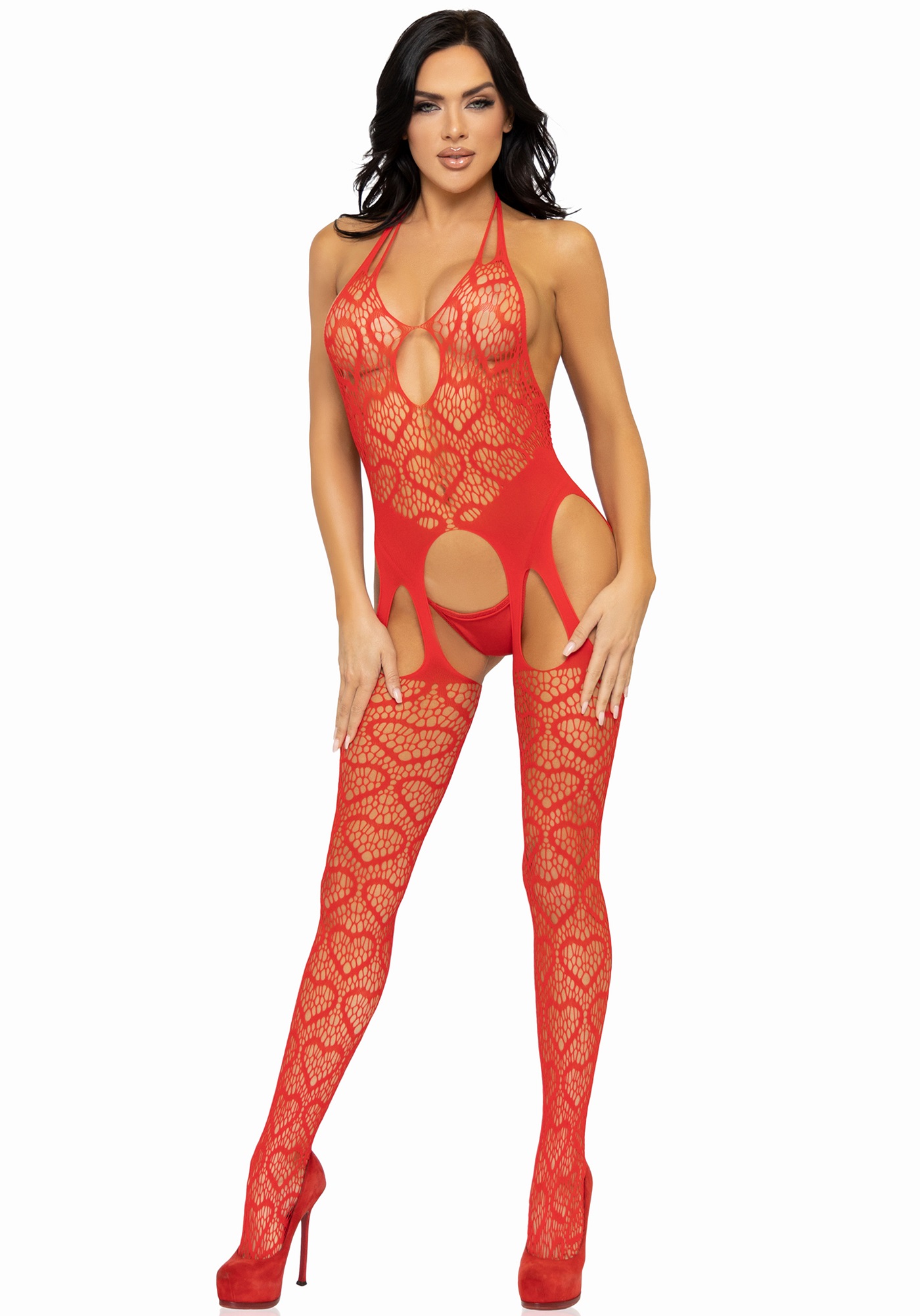 Leg Avenue Lingerie: sexy bodystocking aperta con cuori in rosso
