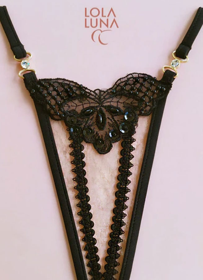Lola Luna: Perizoma in tulle Paloma decorato da ricami e gioielli neri