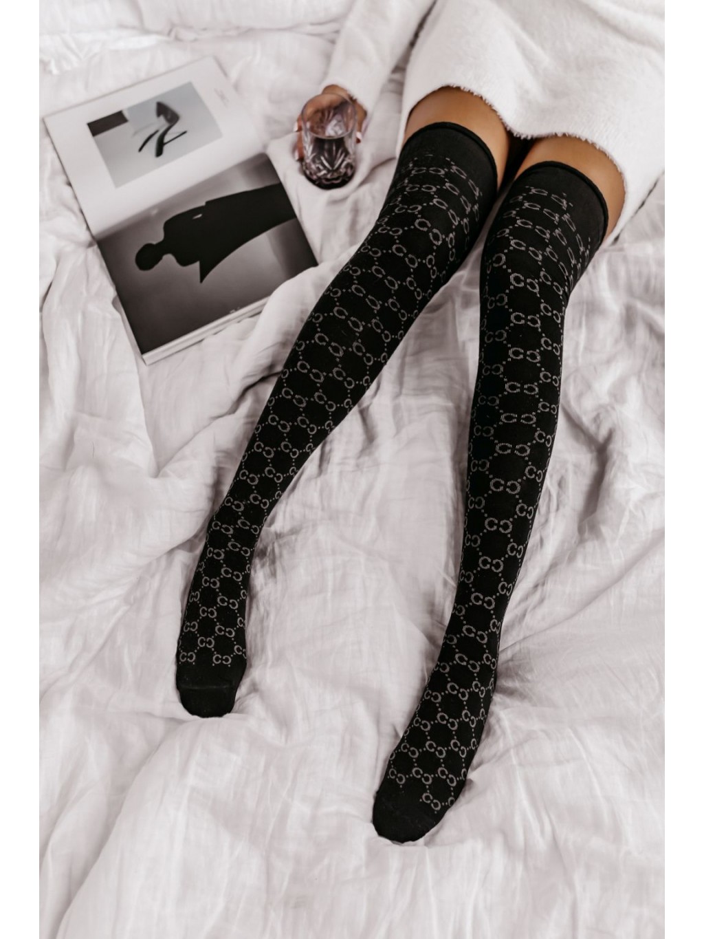 Calze parigine oltre il ginocchio con motivo decorativo effetto lusso