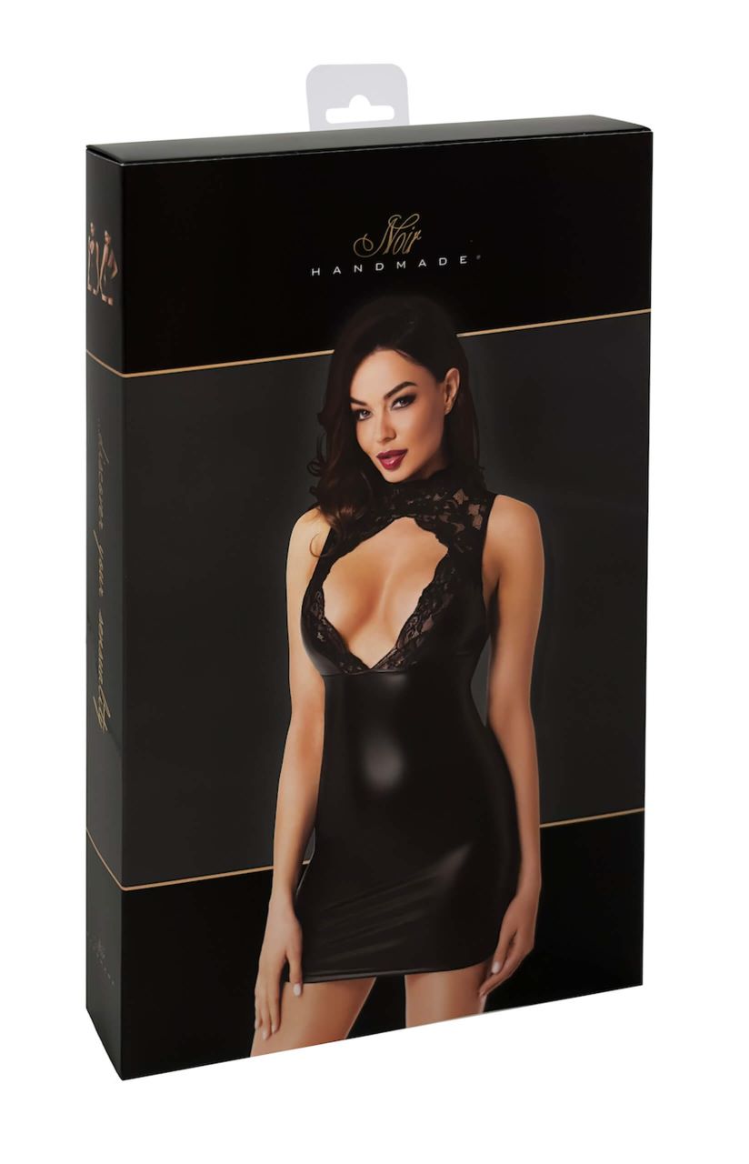 Mini Dress in tessuto wetlook e pizzo Pandora da Noir Handmade