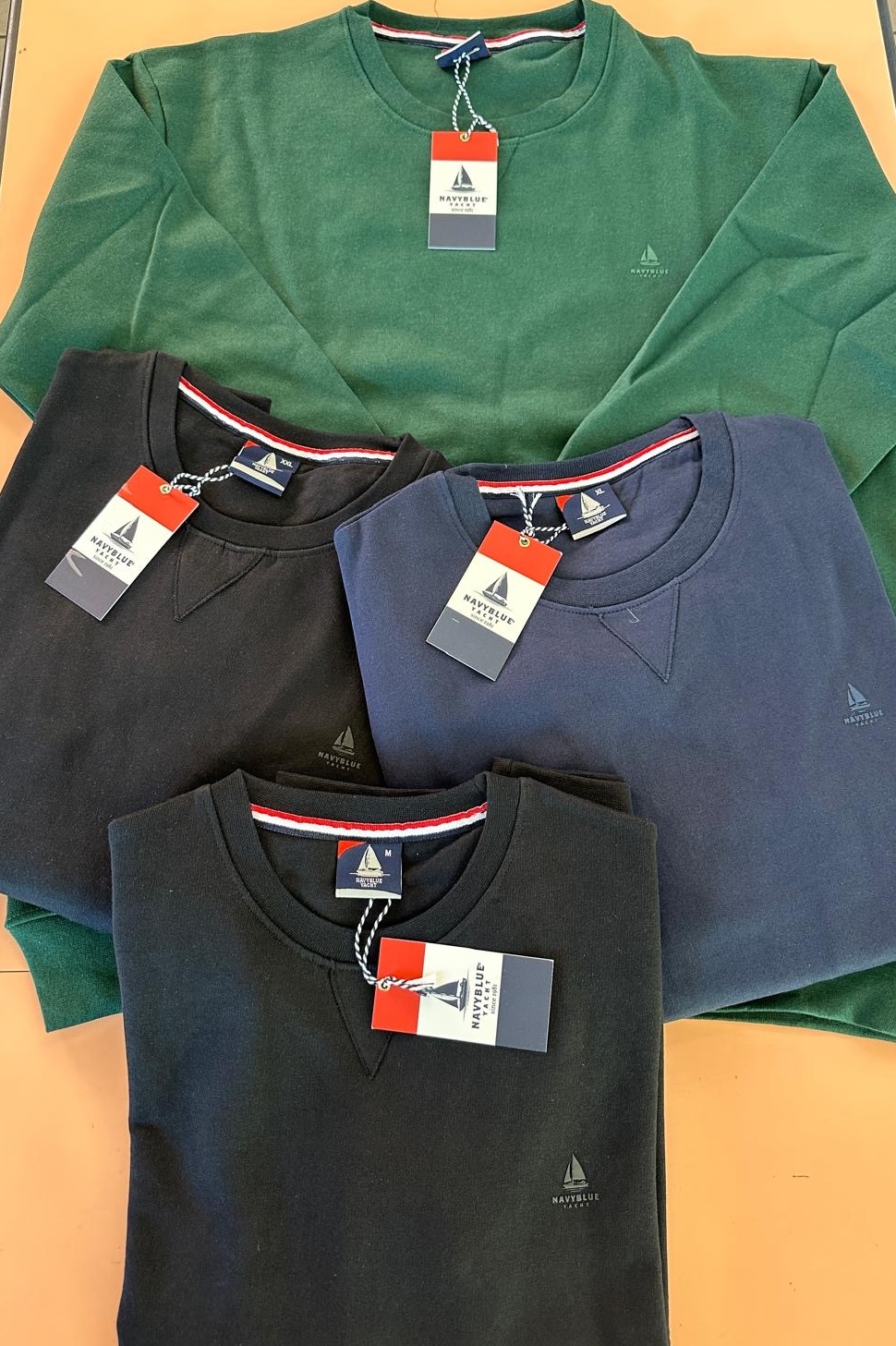 Felpa uomo della linea NavyBlue a girocollo in leggero cotone felpato all’interno, polsino alla manica e vita. Disponibile in 4 colori, fino alla taglia XXL.