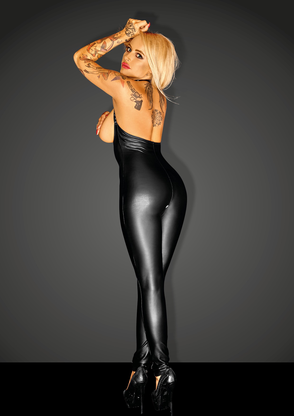 Sensuale tuta senza coppe wetlook da Noir Handmade