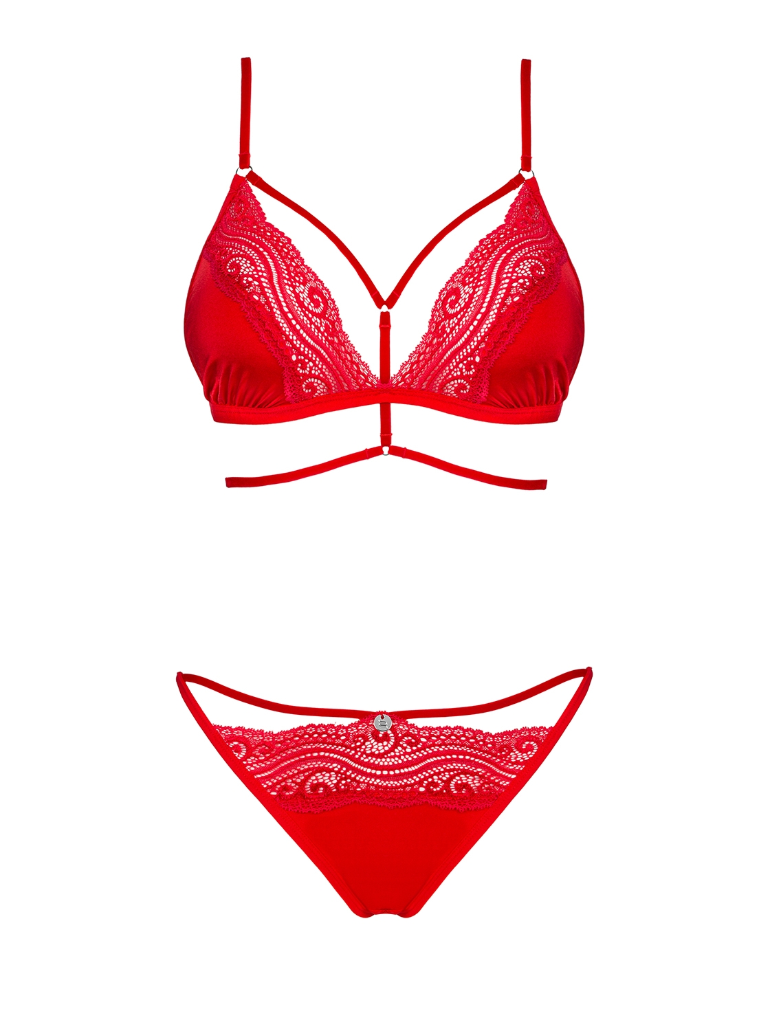 Questo set è un concentrato di sensualità. Il rosso intenso catalizza l’attenzione e attira lo sguardo, gli inserti cut-out e il tessuto trasparente stimolano l’immaginazione e invitano chi ami a scoprire porzioni inesplorate del tuo corpo. Ti sentirai una dea!