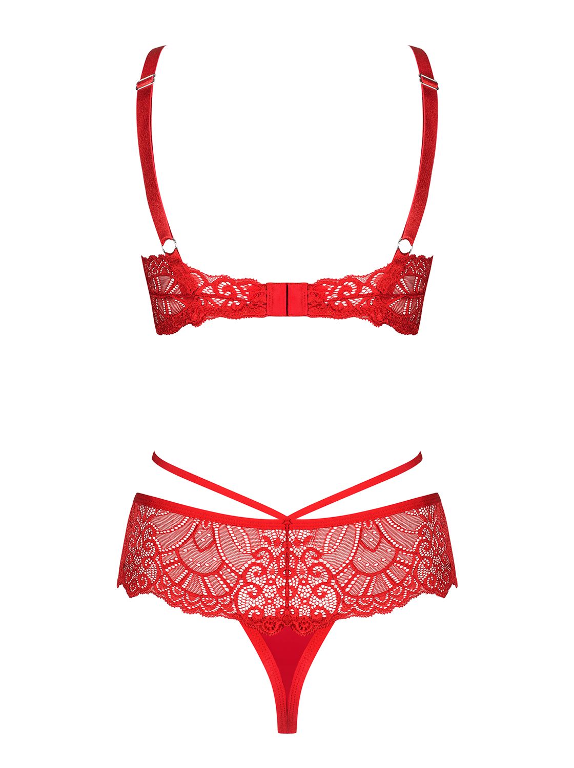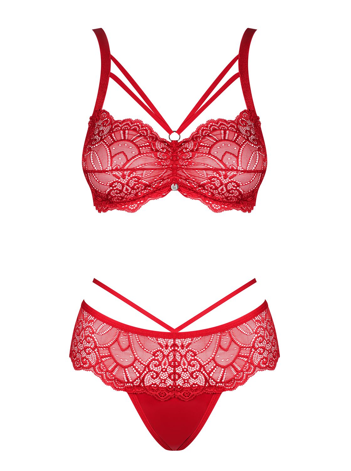 Set in pizzo rosso con stringhe.