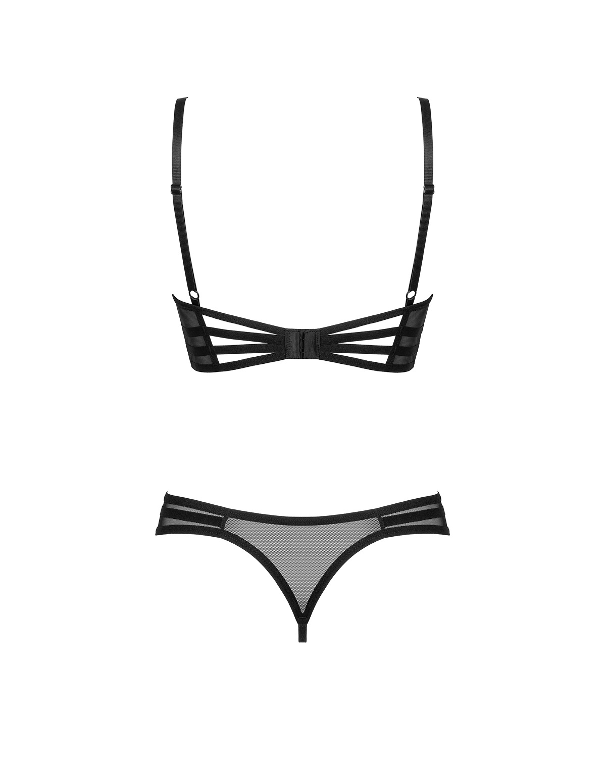 Sexy completino aperto con bralette e perizoma, decorato a righe di differenti opacità.