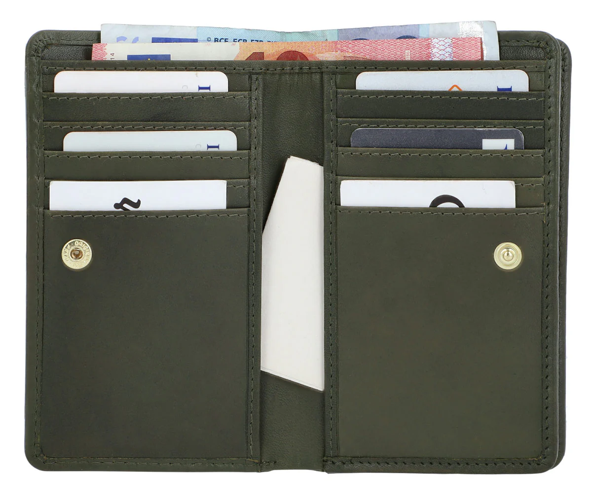 All’interno, “Beckett” convince con un sistema di carte ampio, un comparto separato per le monete con cerniera, e uno scomparto per le banconote. Realizzato in pelle bovina conciata di alta qualitĂ , “Beckett” offre un tatto estremamente piacevole, oltre a forma e stabilitĂ . Il design di “Beckett” è completato da una chiusura a pressione tutto intorno. Così niente può cadere fuori.