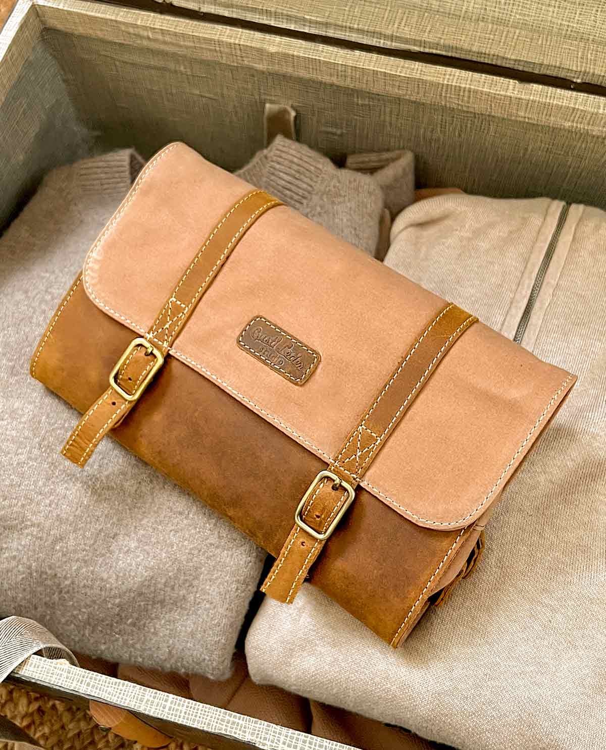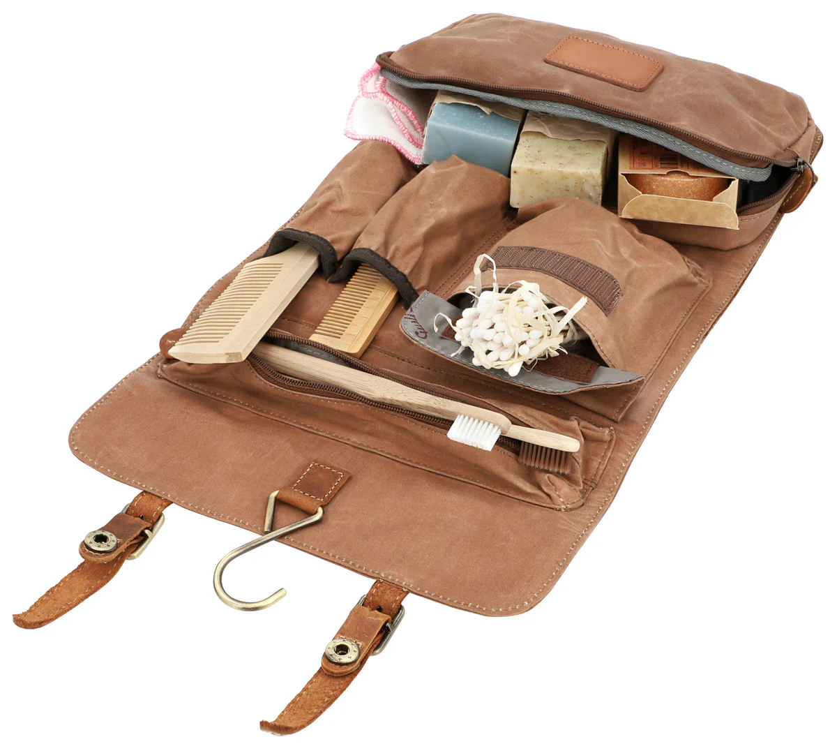 Una volta aperto, arriva la grande meraviglia. Con “Rodney” è stato pensato davvero a tutto: è realizzato in un mix di materiali di alta qualità di tela e pelle di bufalo. All’interno ha diversi scomparti di varie dimensioni e formati per il tuo spazzolino da denti, shampoo, spazzola, accessori per la rasatura, cosmetici e molto altro.Il tessuto interno in policotone impermeabile previene piccoli incidenti causati da bottiglie di shampoo rovesciate. Il robusto gancio in metallo consente inoltre di appendere “Rodney” alla parete con estrema facilità . Le fibbie regolabili e i bottoni automatici completano il design. Beauty case “Rodney” – un vero creatore di tranquillità !