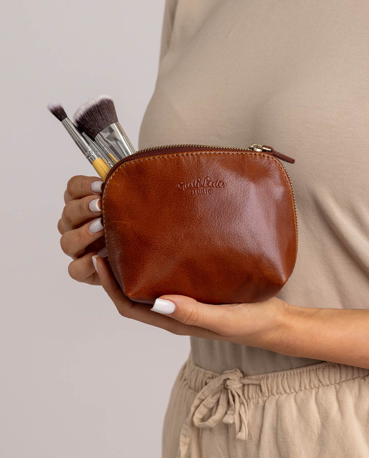 La cerniera perimetrale sottolinea l’aspetto classico ed elegante della Pelle di bufalo, accentuando il tocco di stile di “Leo” senza risultare invadente. L’interno della beauty bag è in policotone impermeabile, così anche un correttore che cola non sarà più un problema. Inoltre, è spaziosa e ben organizzata, così avrai abbastanza spazio per i tuoi strumenti di bellezza più importanti, per i tuoi articoli da toilette o per la barretta di cioccolato contro la prossima fame chimica.
