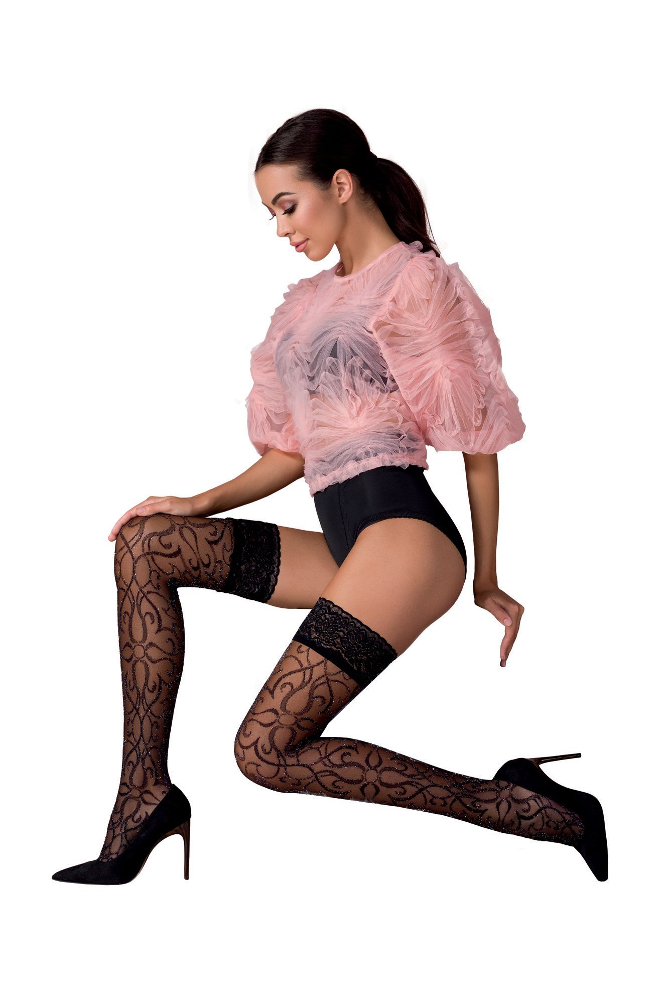 Autoreggenti con decori in lurex.