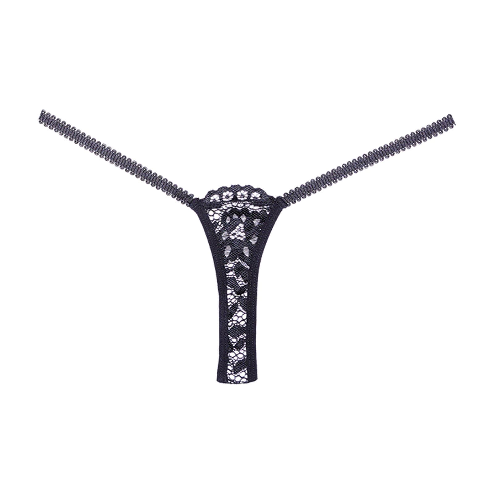 Perizoma in pizzo nero con dettagli gioiello