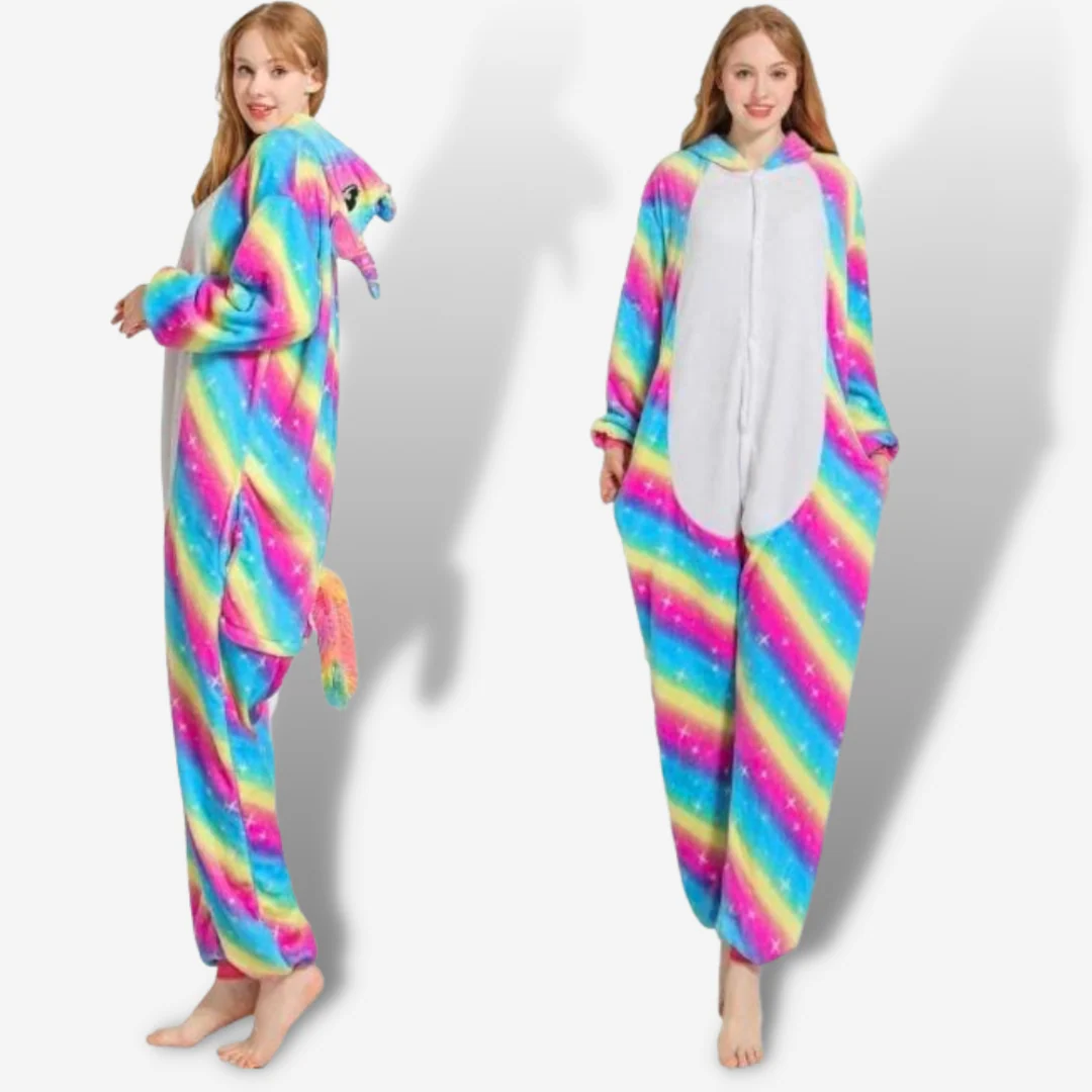 Pigiama ad unicorno multicolore, ideale per le donne.