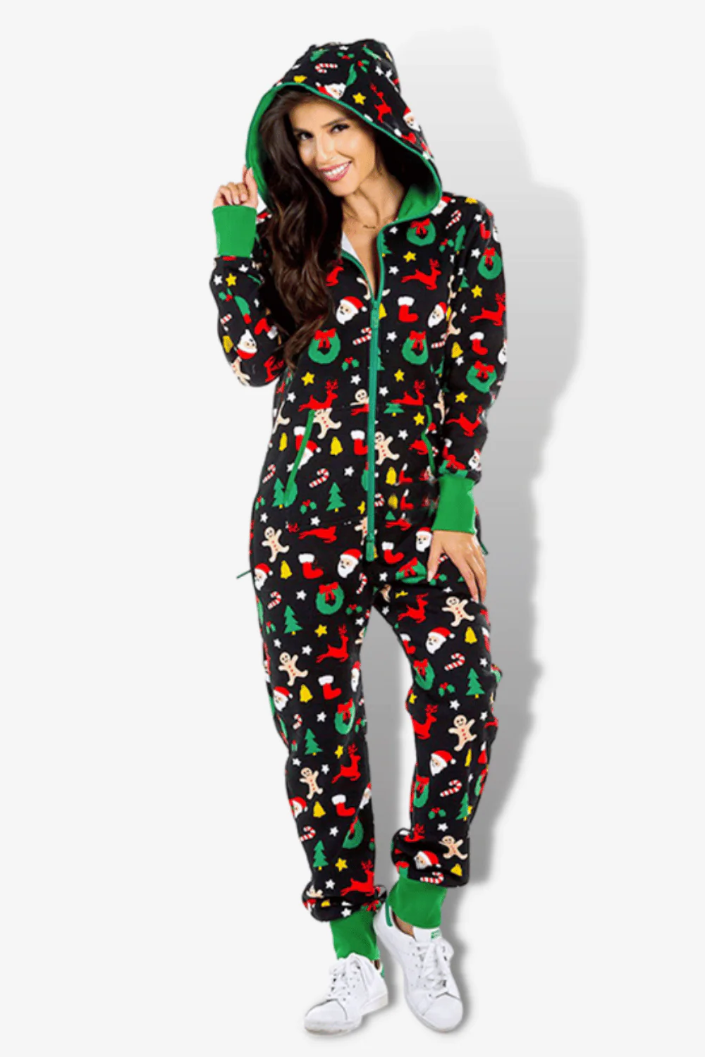 Pigiama intero con stampa di Babbo Natale per donna.