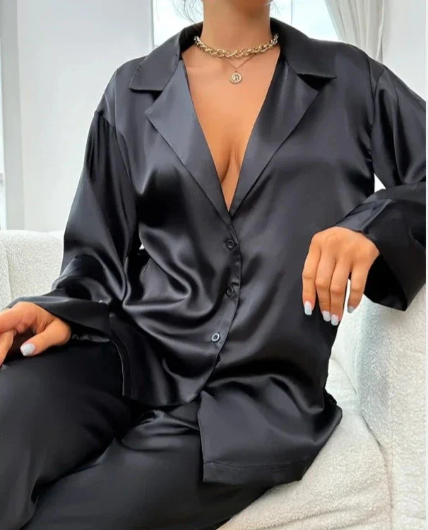 Eleganza Notturna: Il Pigiama di Seta da Donna con Bottoni
