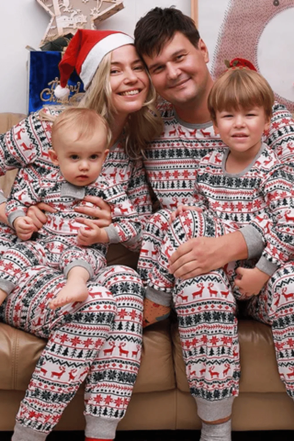 Pigiama natalizio per tutta la famiglia di colore bianco.