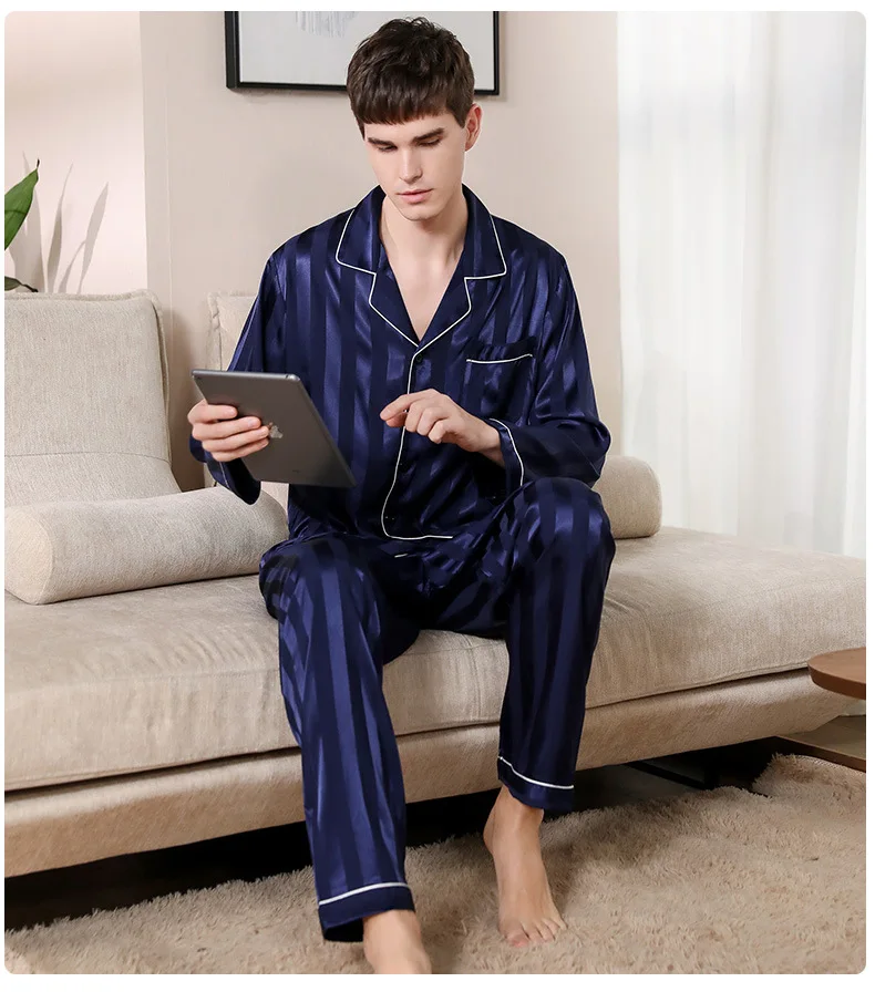 Scopri l’eleganza e il comfort del nostro Pigiama Uomo a Righe di Seta, ideale per tutte le stagioni. Progettato sia per il riposo che per il relax domestico, questo set รจ un must-have nel guardaroba di ogni uomo.
