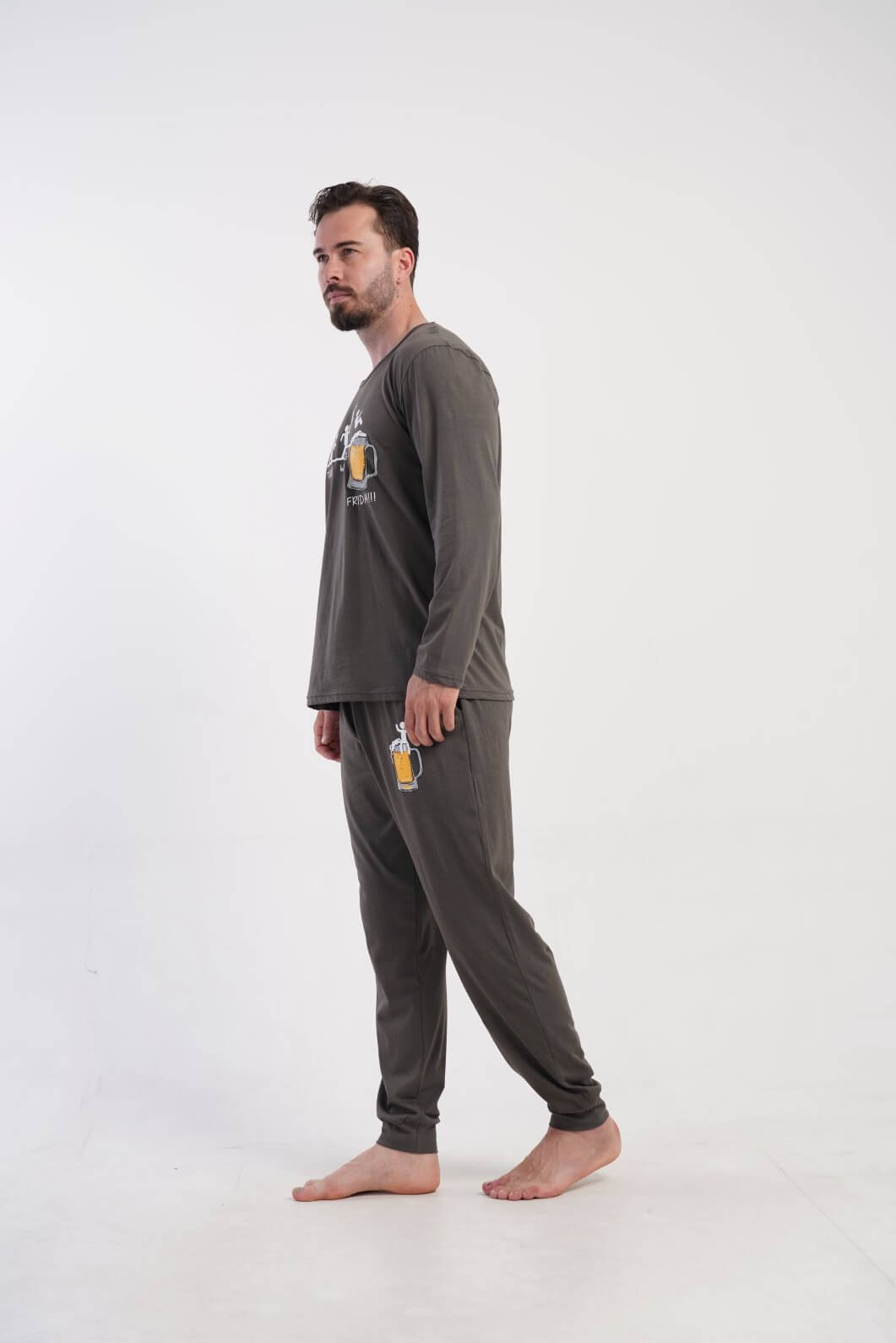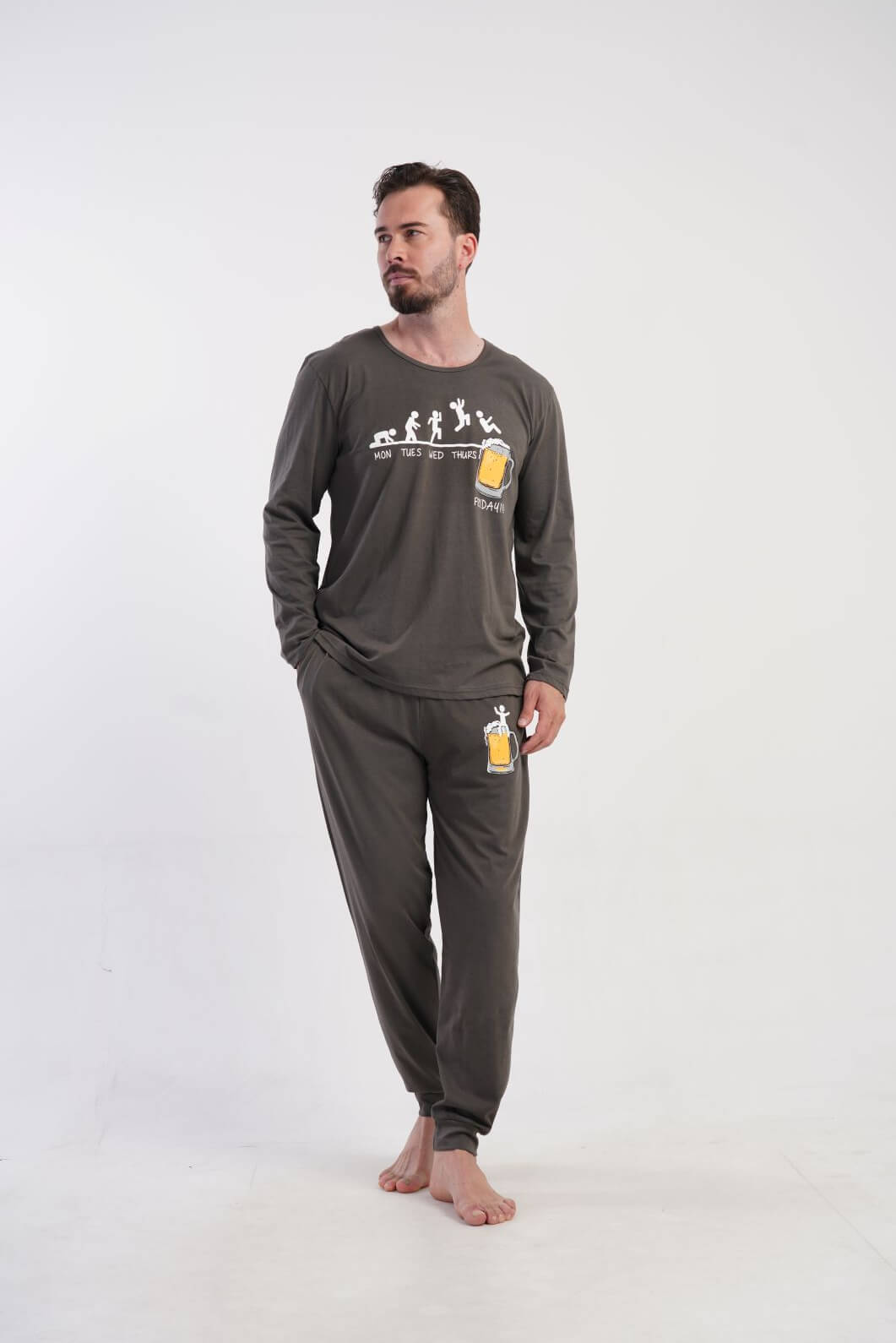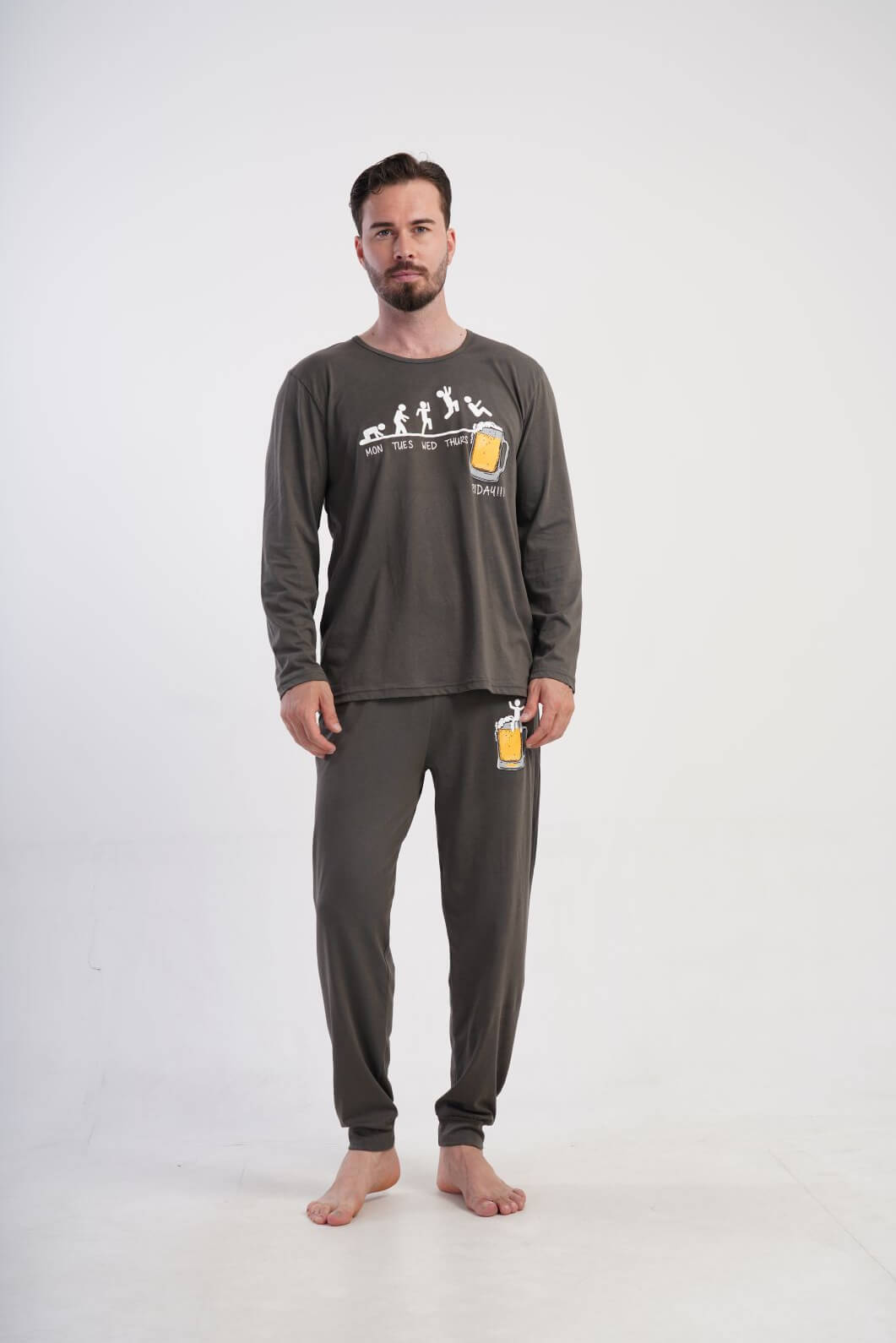 Pigiama uomo grigio stampa birra – 100% cotone