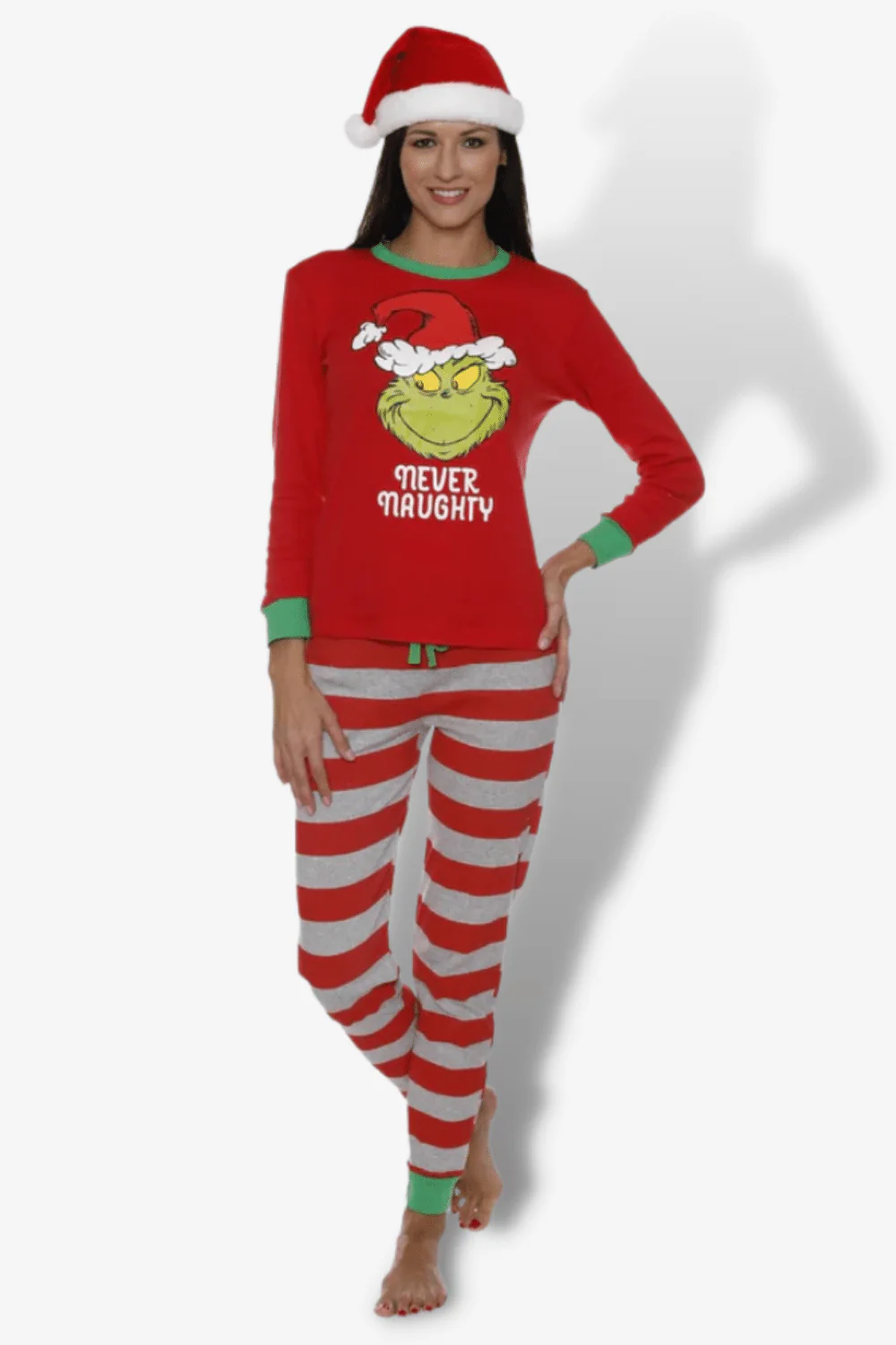 Pigiami per la famiglia Natale di colore rosso a motivo Grinch.