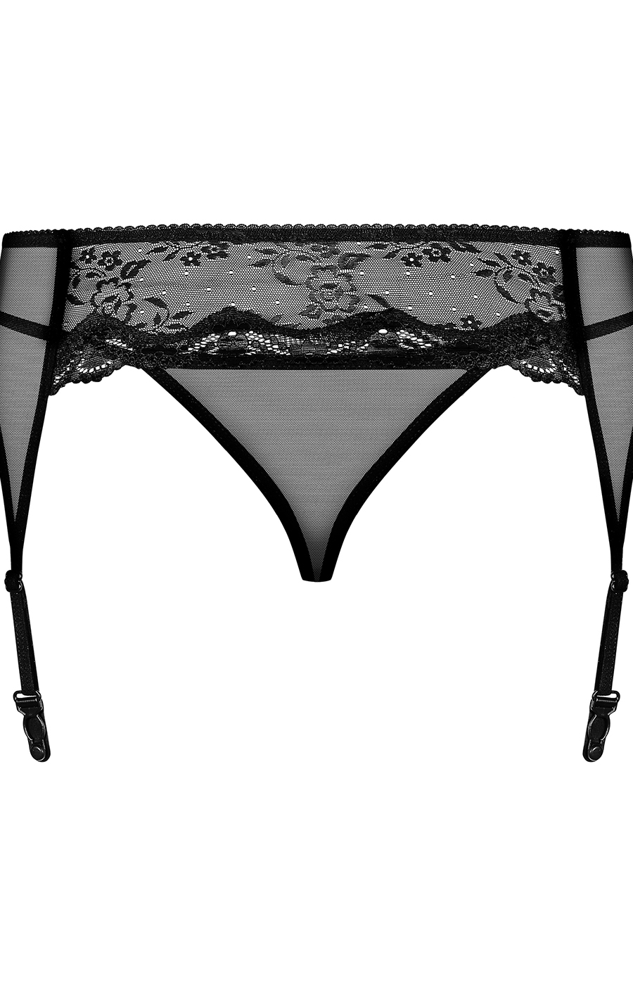 Reggicalze Charms nero di Obsessive – Eleganza floreale e dettagli luminosi