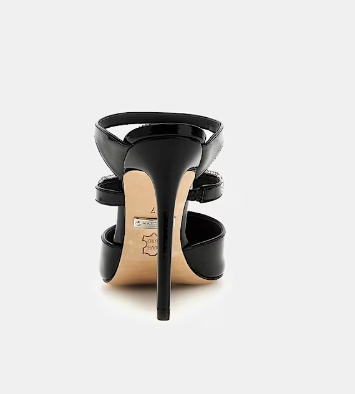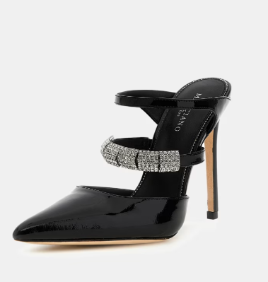 Sandalo crystal mule Marciano donna. Mule a punta in pelle. Pelle verniciata. Lacci con strass. Altezza tacco a stiletto: 11 cm / 4 inch.