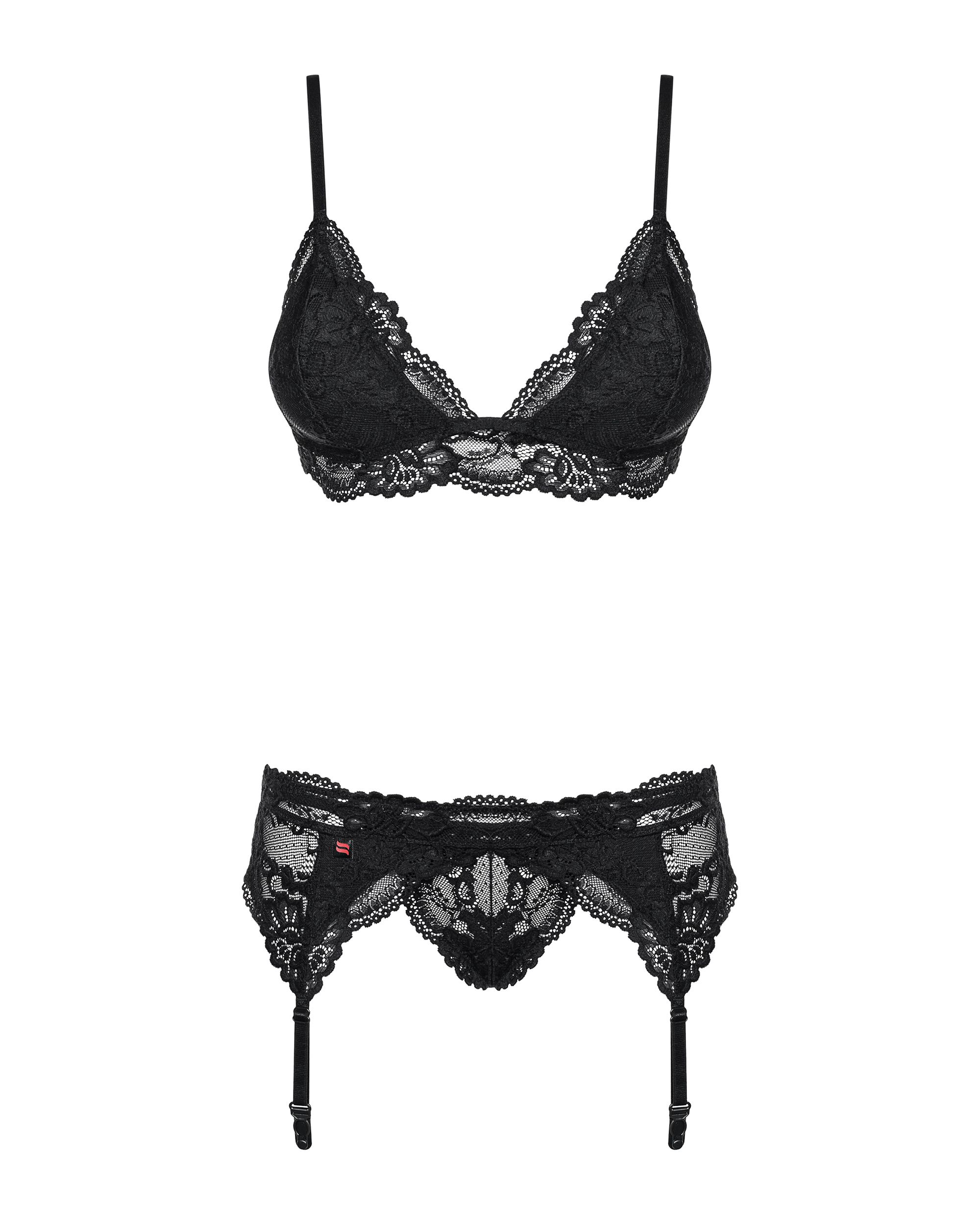 Set 810 nero Obsessive – reggiseno, reggicalze e tanga