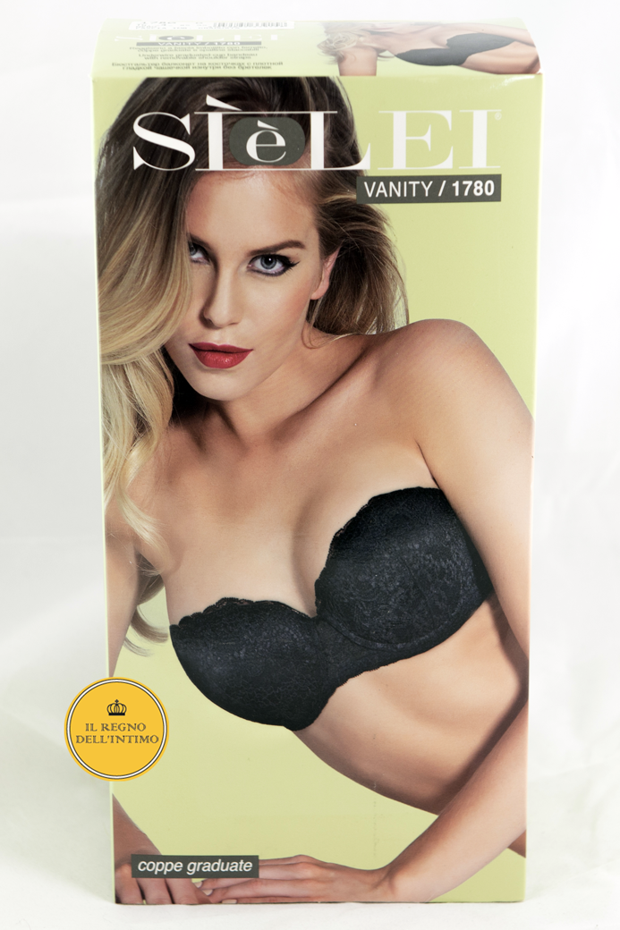 Reggiseno SI è LEI a fascia imbottito con ferretto. Realizzato in raffinata balza di pizzo con cordonetto in rilievo a motivo floreale. Spalline removibili. Disponibile in tre colori: Nero Bianco Nudo