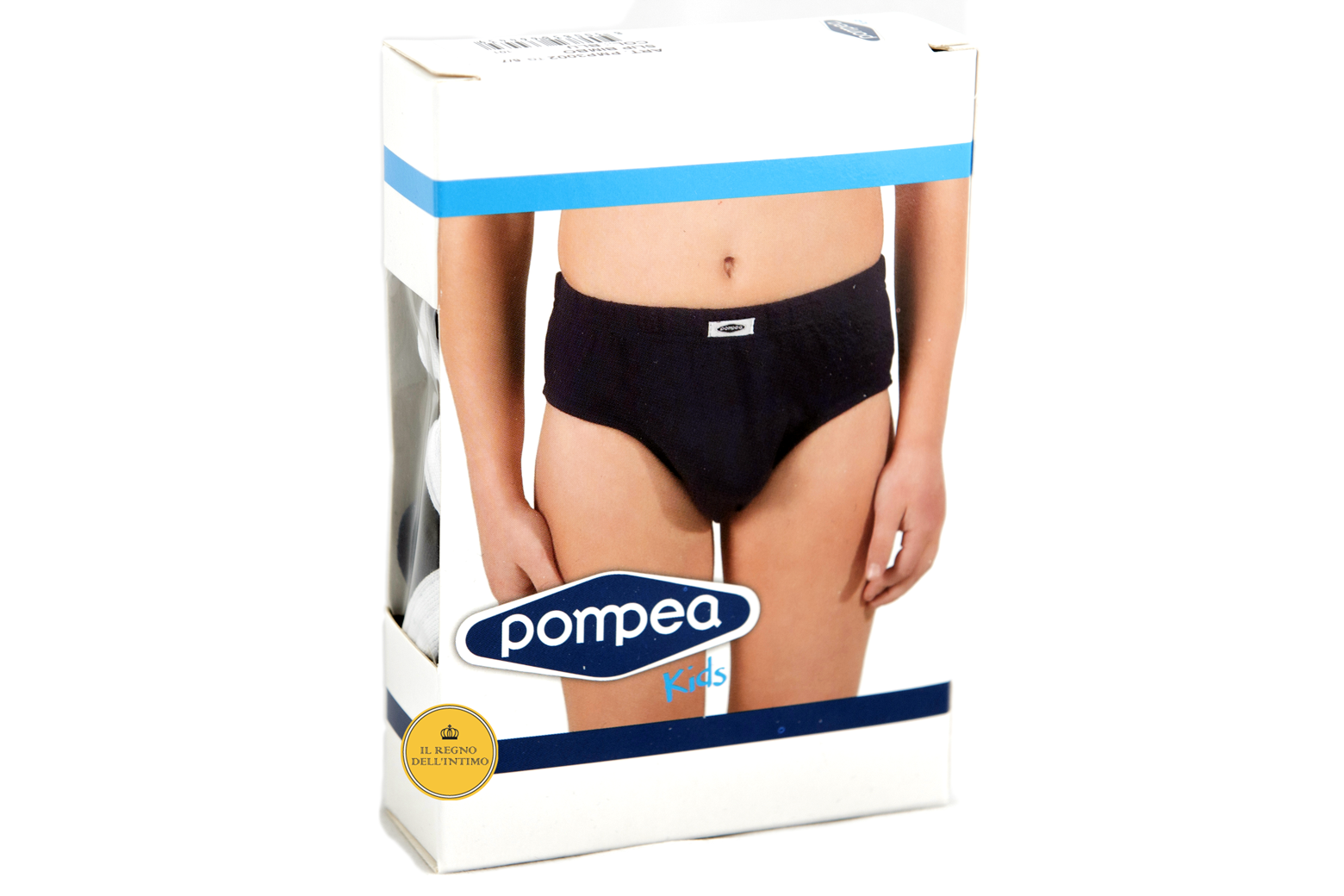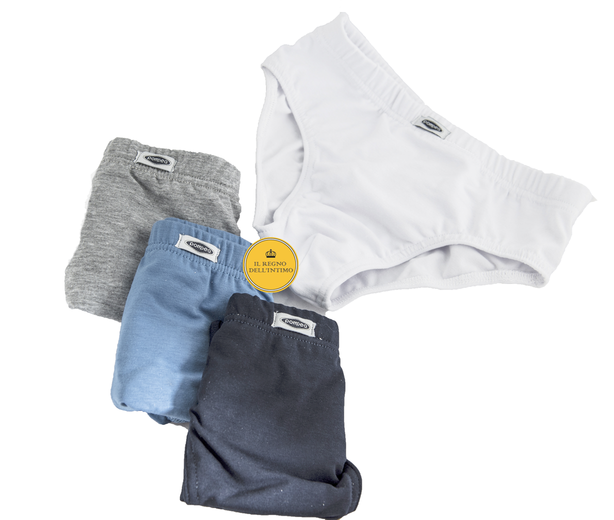 Pompea slip bambino con elastico interno in puro cotone. Disponibile in 4 colori: Bianco Blu Grigio Bluette
