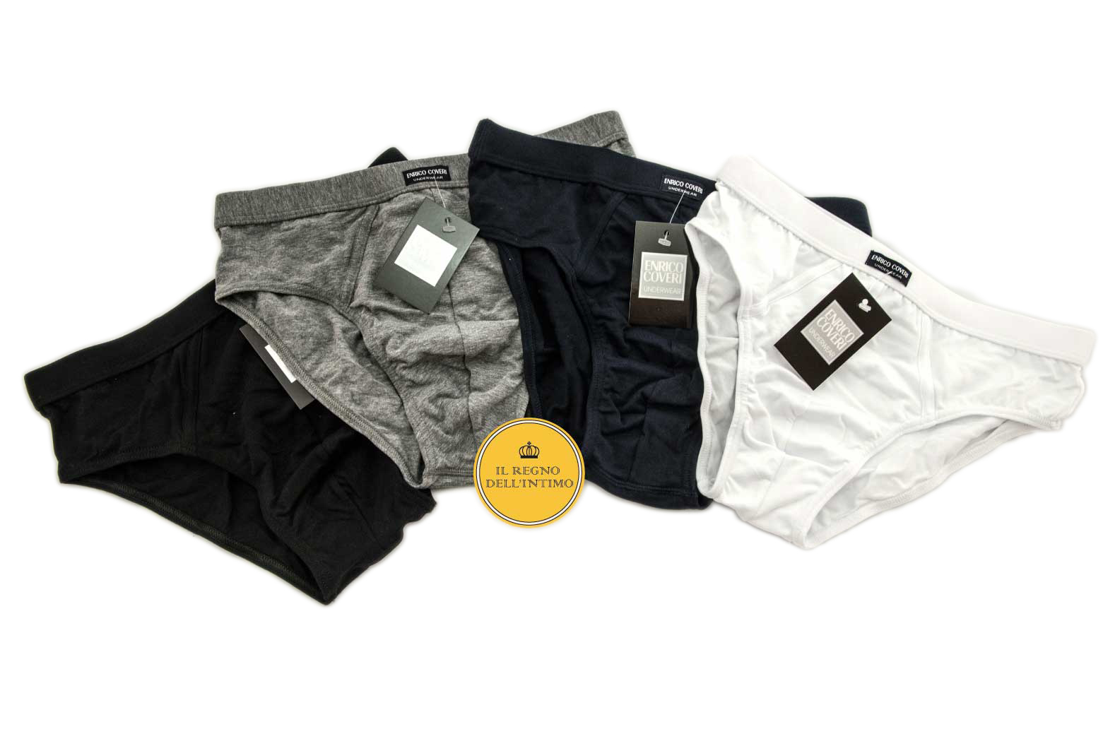 Slip Enrico Coveri uomo in morbido cotone elasticizzato con elastico interno rivestito in cotone. Ottima qualità! Dei colori grigio e blu il massimo acquistabile è di pezzi.10 per colore. Disponibile in quattro colori: Nero Bianco Grigio Blu