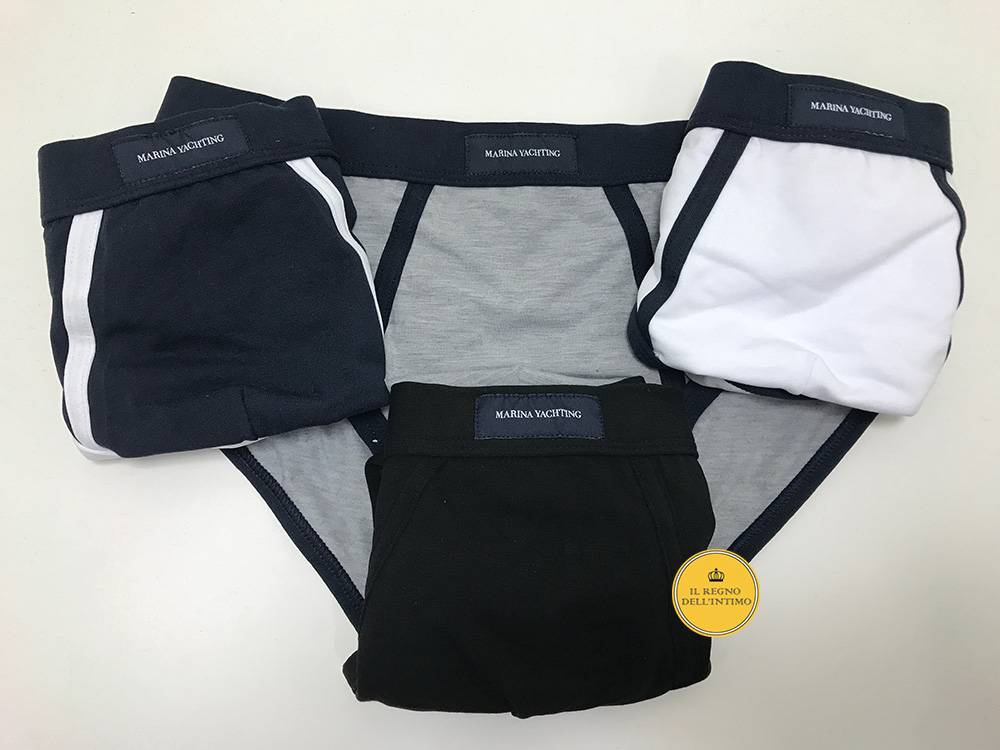 Slip moda uomo Marina Yachting in cotone elasticizzato. Fascia elastica in vita. Disponibile in quattro colori: Blu Grigio Nero Bianco