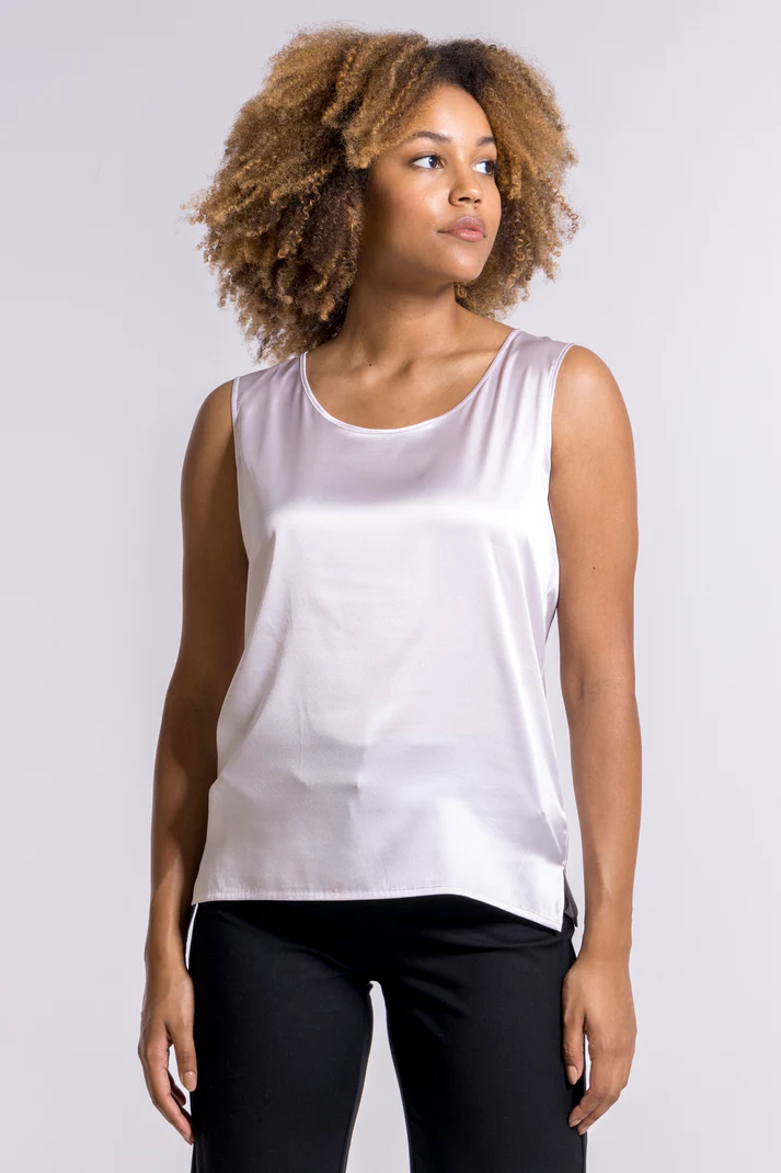 Top Seta Elasticizzata Oscalito Realizzato in un delicato raso di seta elasticizzato. Super morbido al tatto per il massimo dell’eleganza e del comfort. Realizzato in morbida seta pura, per una sensazione di lusso incredibile a contatto con la pelle. 92% SETA , 8% ELASTAN Tutta la nostra SETA è certificata GOT